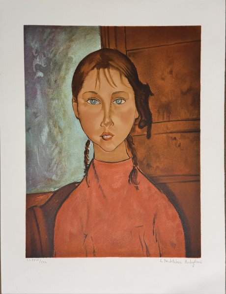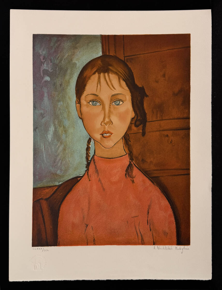 真作保証:アメデオ・モディリアーニ (Amedeo Clemente Modigliani)『おさげ紙の少女』 リトグラフ 限定CCL 売切り