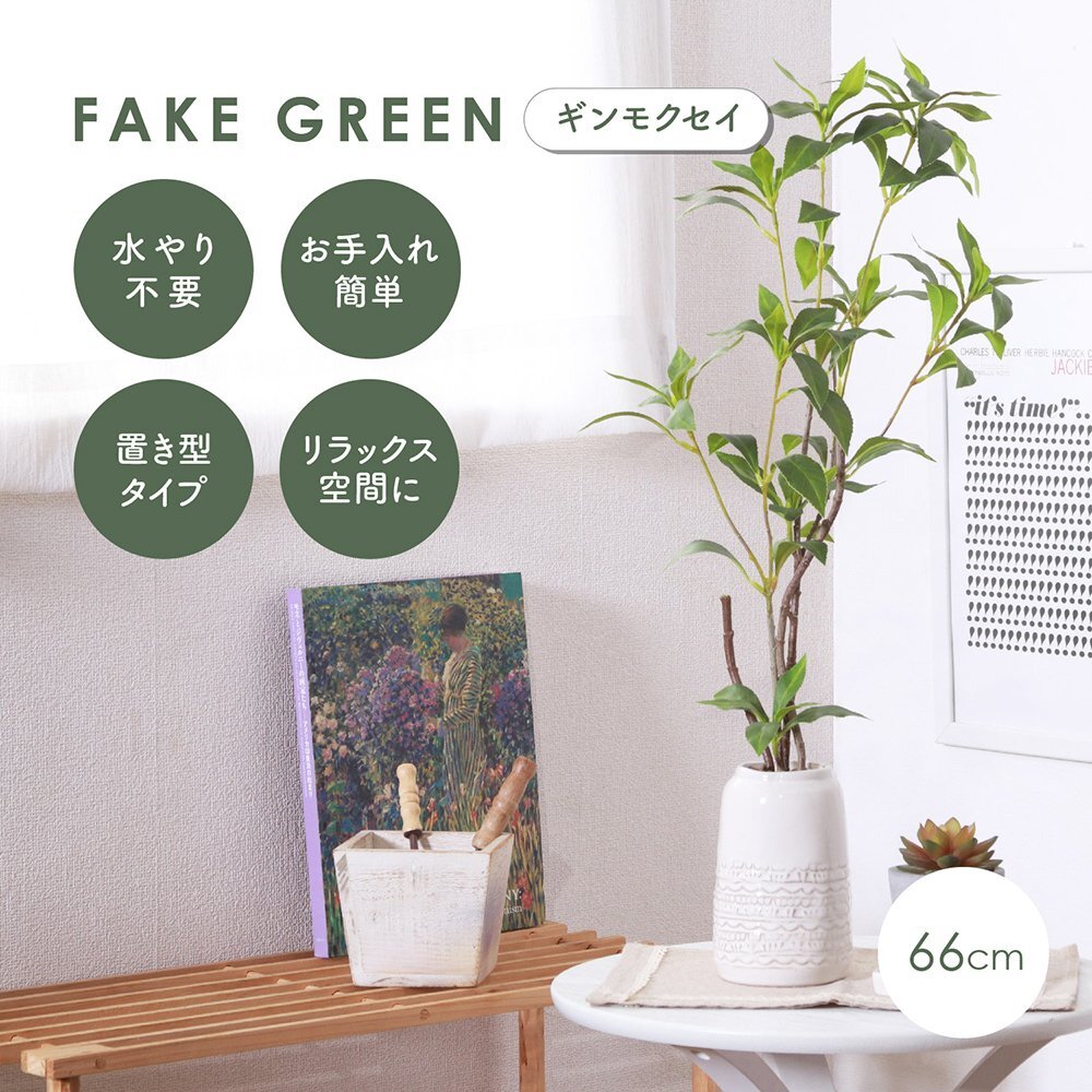 | デザインポットでそのまま置ける 人工観葉植物 ギンモクセイ |
