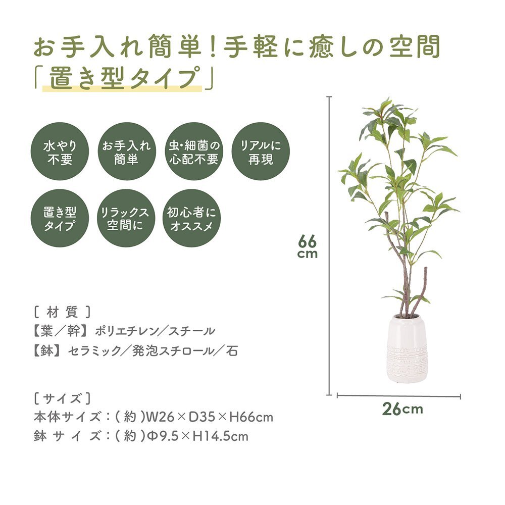 | 商品サイズ | 全体:約幅26cm×奥行35cm×高さ66cm 鉢:Φ9.5cm×H14.5cm |