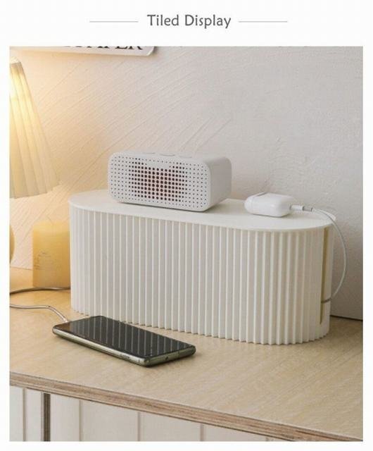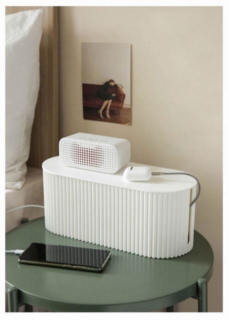 無駄のないシンプルなデザインで、部屋に馴染みます。 蓋付きでホコリが溜まりにくく、蓋の上に小物を置くこともできます。 シンプルながらスタイリッシュなケーブルボックス。 側面には通気口を施し、熱がこもりにくいように設計されています。