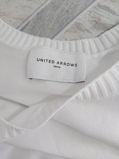 ◇ ⊂ ユナイテッドアローズ ボリュームスリーブ 七分袖 ニット カットソー ホワイト系 レディース E