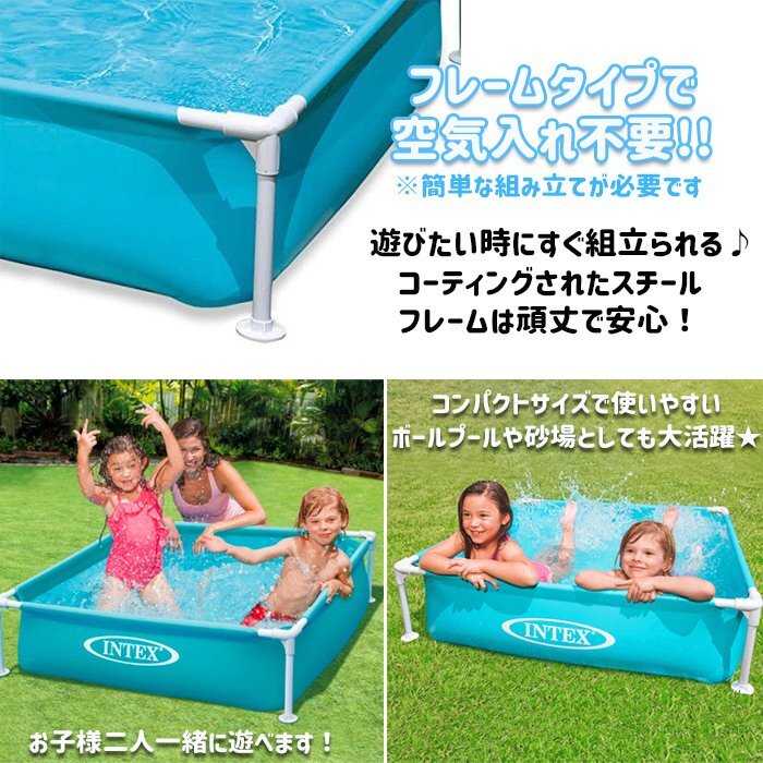 フレームプール 空気入れ不要 組み立て式 ボックスプール 家庭用 子供用 コンパクト プール 夏対策 親子 122×122×30cm hw516