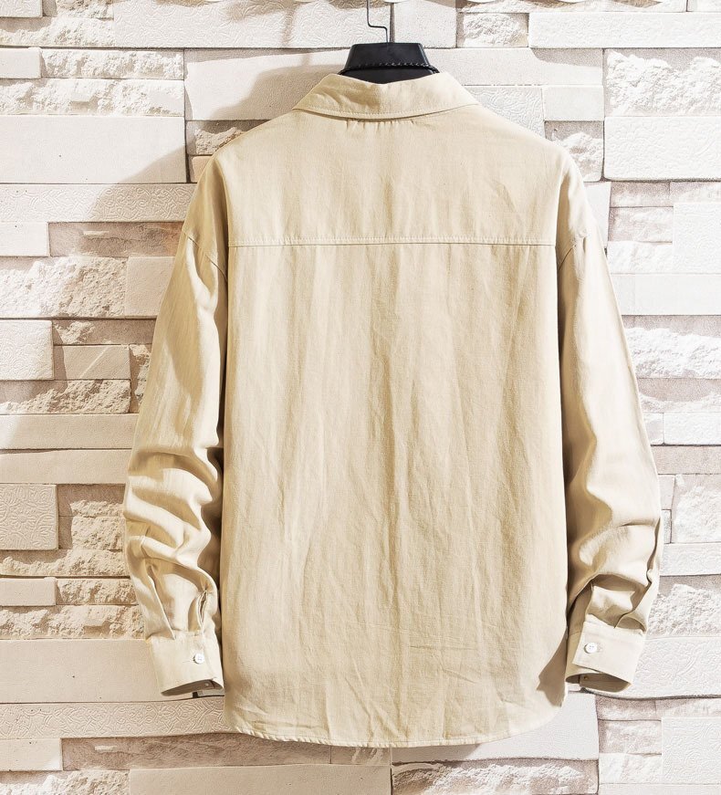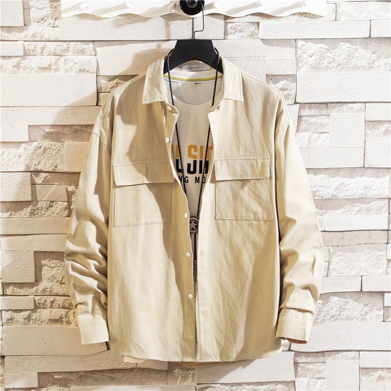 メンズ長袖シャツ カジュアルシャツ トップス 長袖 シャツ オーバーシャツ ミリタリーシャツ ノーカラーシャツ 通勤 カーキ L