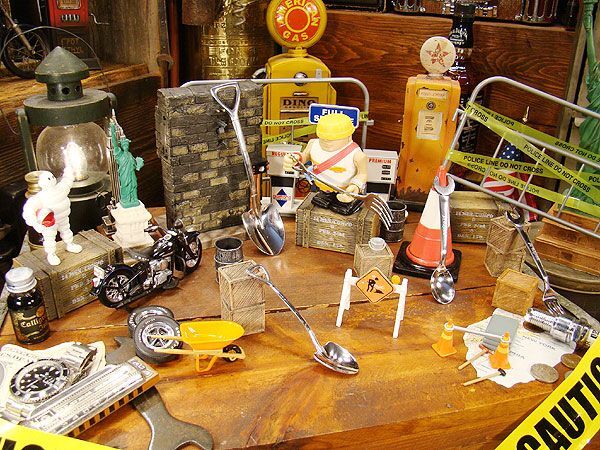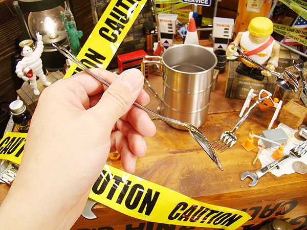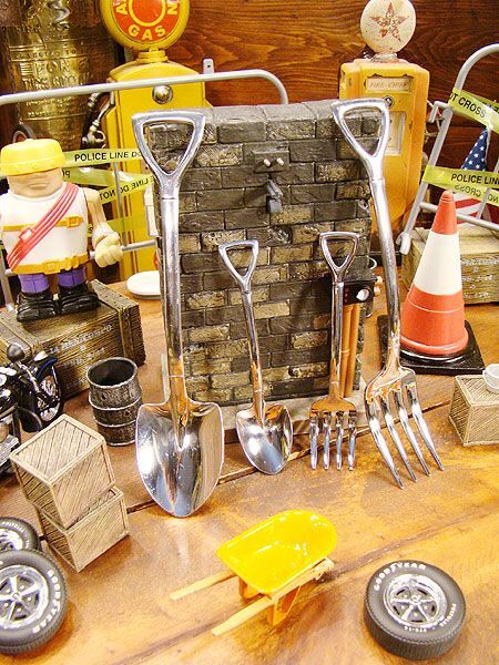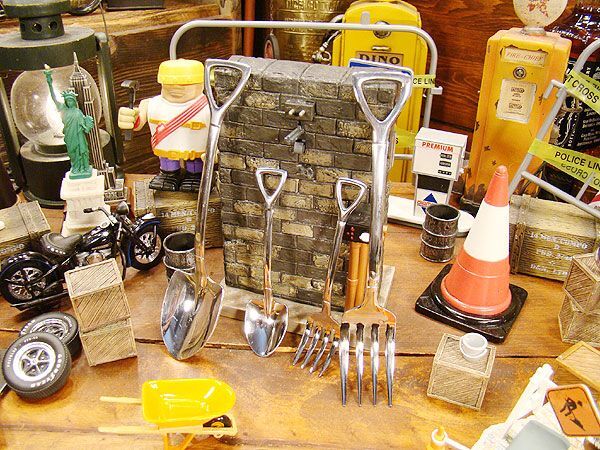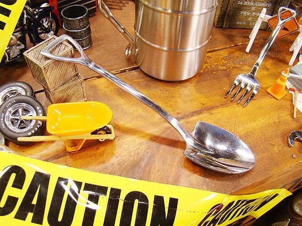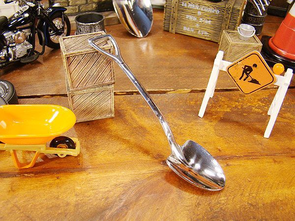 工事現場で見かけるスコップやスパナをモチーフにしたおもしろスプーンとフォークです。