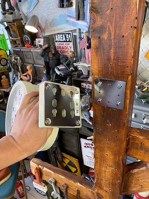 付属の木ねじ&取り付けプレートで自宅の壁や柱に付けると、単なる時刻を知るための時計としてだけでなく、これ自体がシーンを彩るインテリアとして演出してくれるのがまさに魅力です。