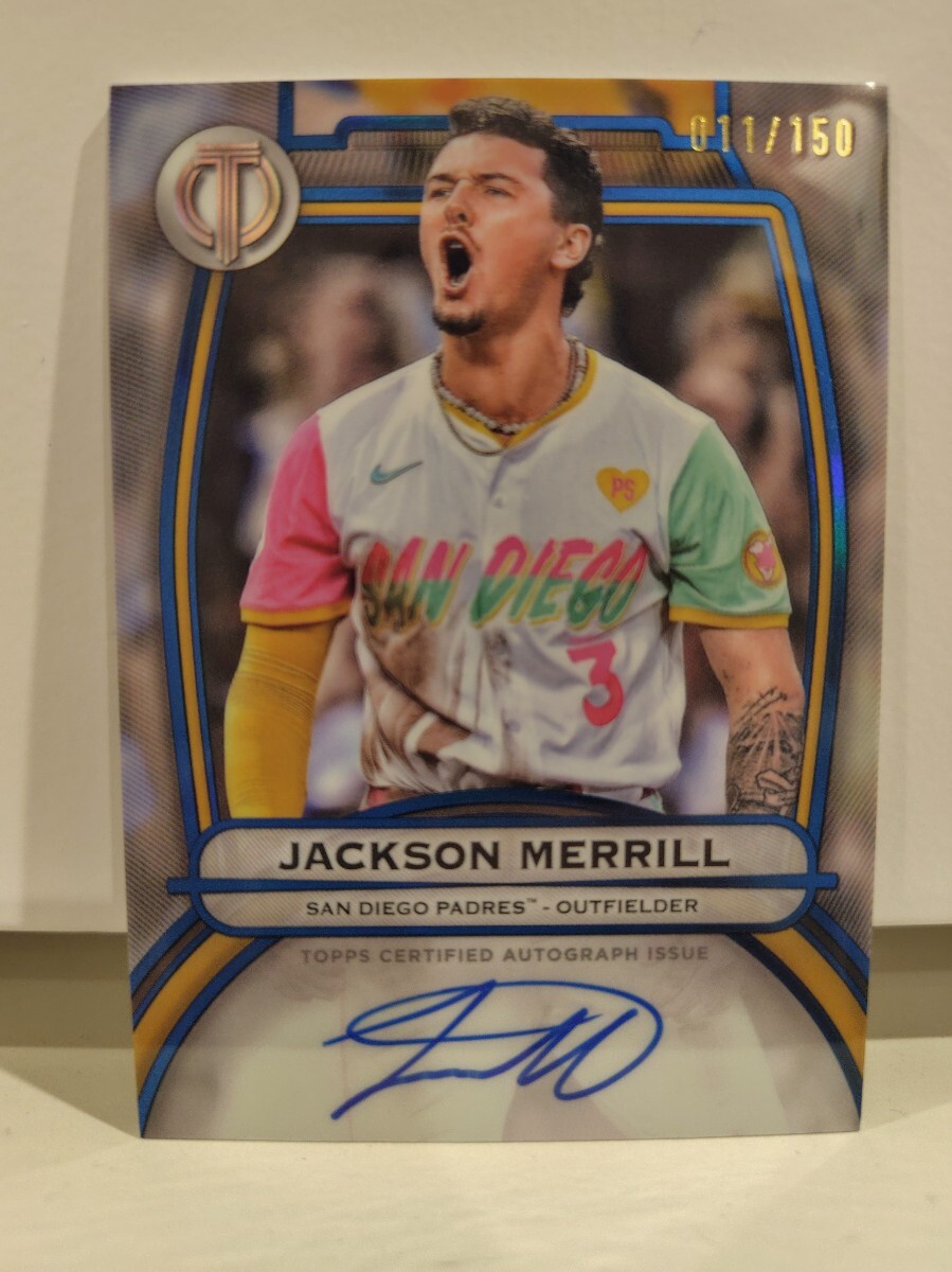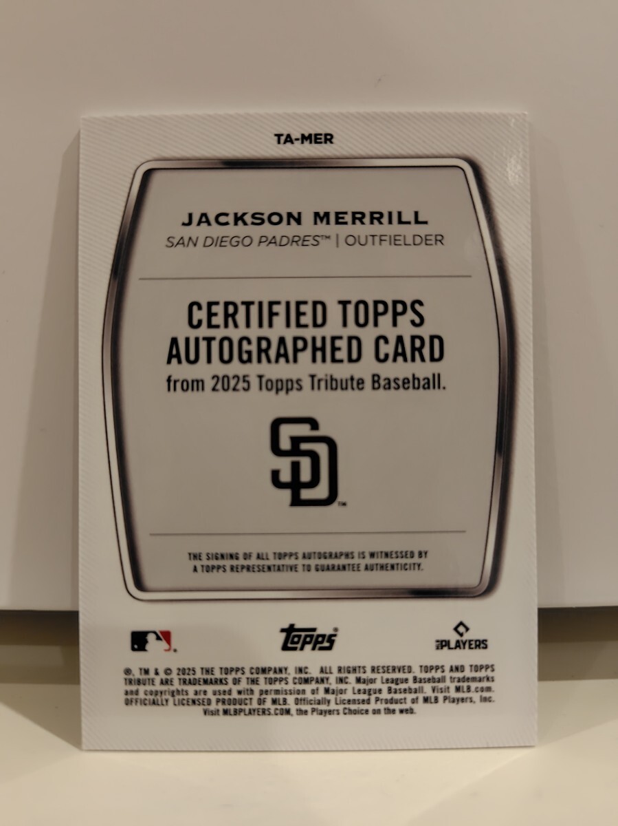 パドレスのジャクソンメリル(jackson merrill)選手の直筆サインカードになります。(オンカード)