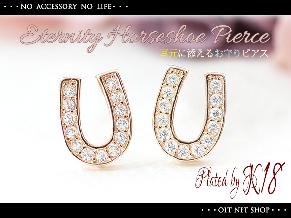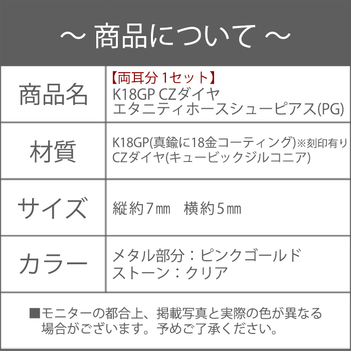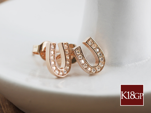 新品/ピアス/K18GP/馬蹄/ピンクゴールド/ダイヤ/18金/レディース/女性/ホースシュー/両耳/スタッド/上品/シンプル/CZ/PG