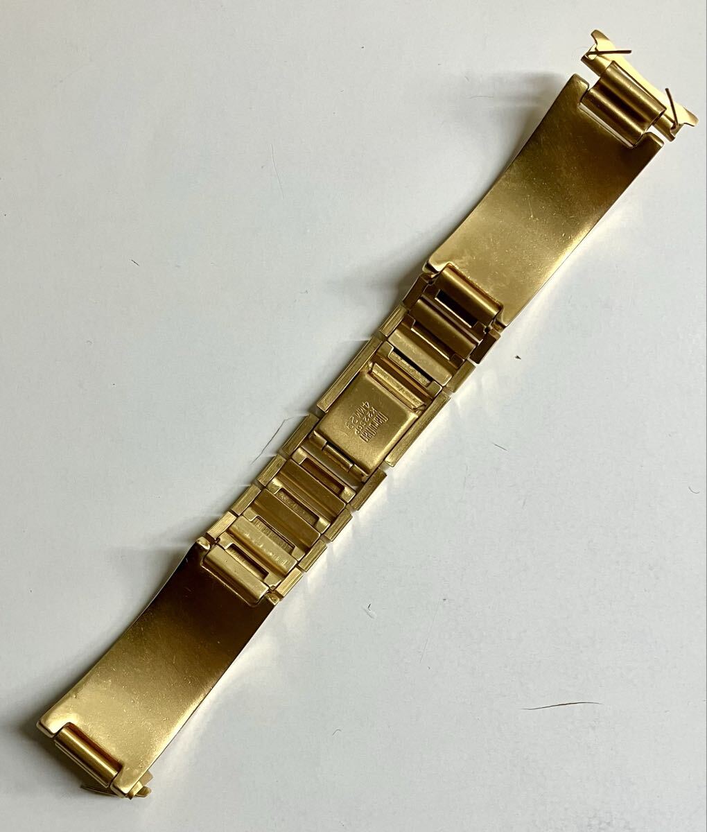 現代の腕時計のベルトには見られないような、独特なデザインが魅力的です。