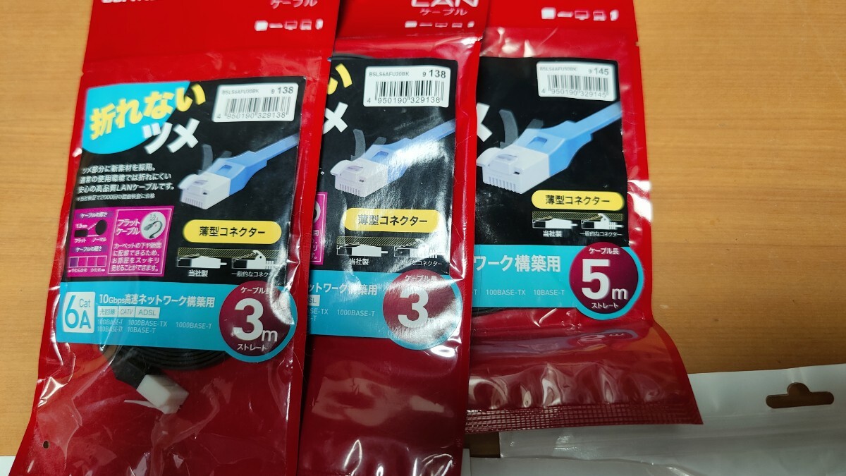 BUFFALO CAT6A 3m x2, 5mx1(フラットケーブル)