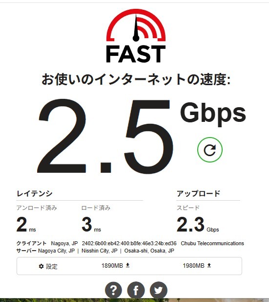 別途購入した同機種では、コミュファ光10G でfast.cnd接続(多少高めに出る)では理論値が出ました。(PC側:Realtek RTL8156B/w11Pro)