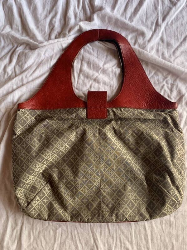 状態に関して、こちら中古品であり、持ちて部分の裏の生地にちょっとした痛みあり、また全体的になんとなく使用感ありますが、とくに問題なく利用できるかと思います