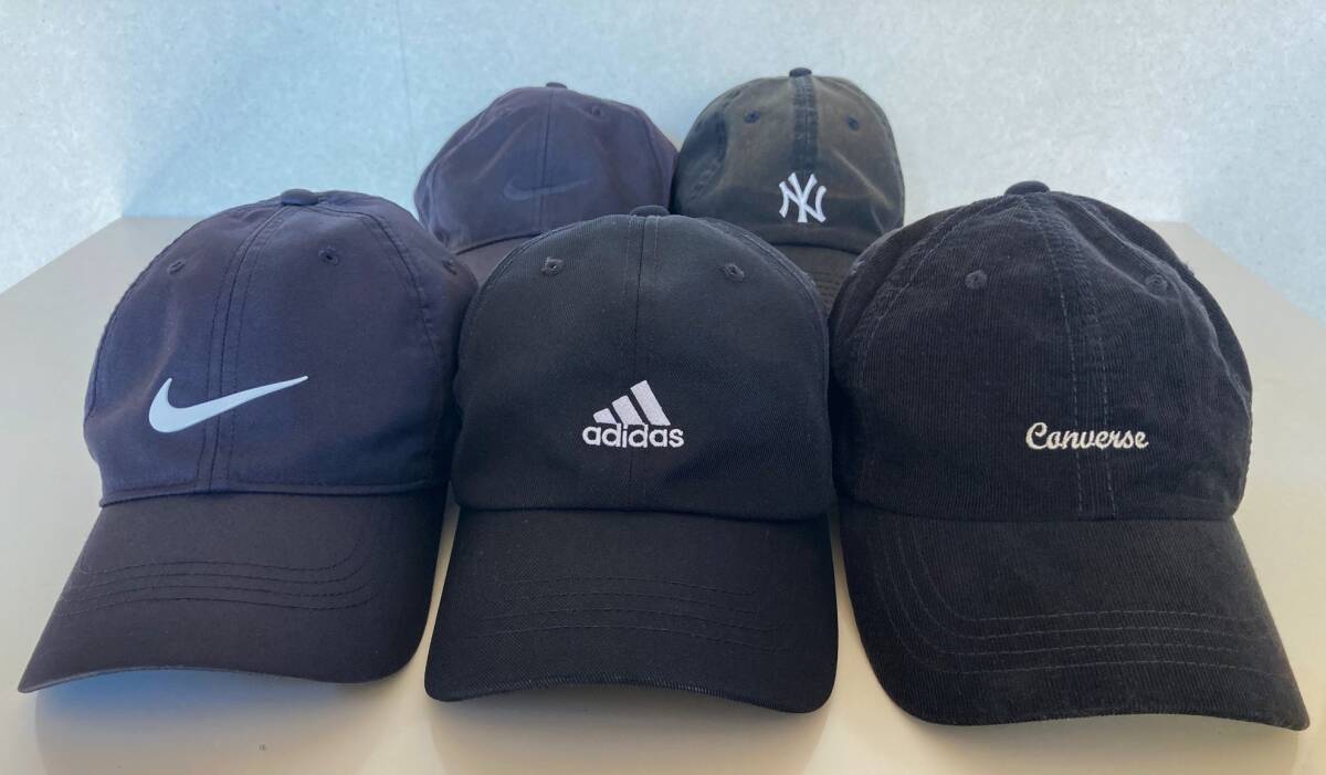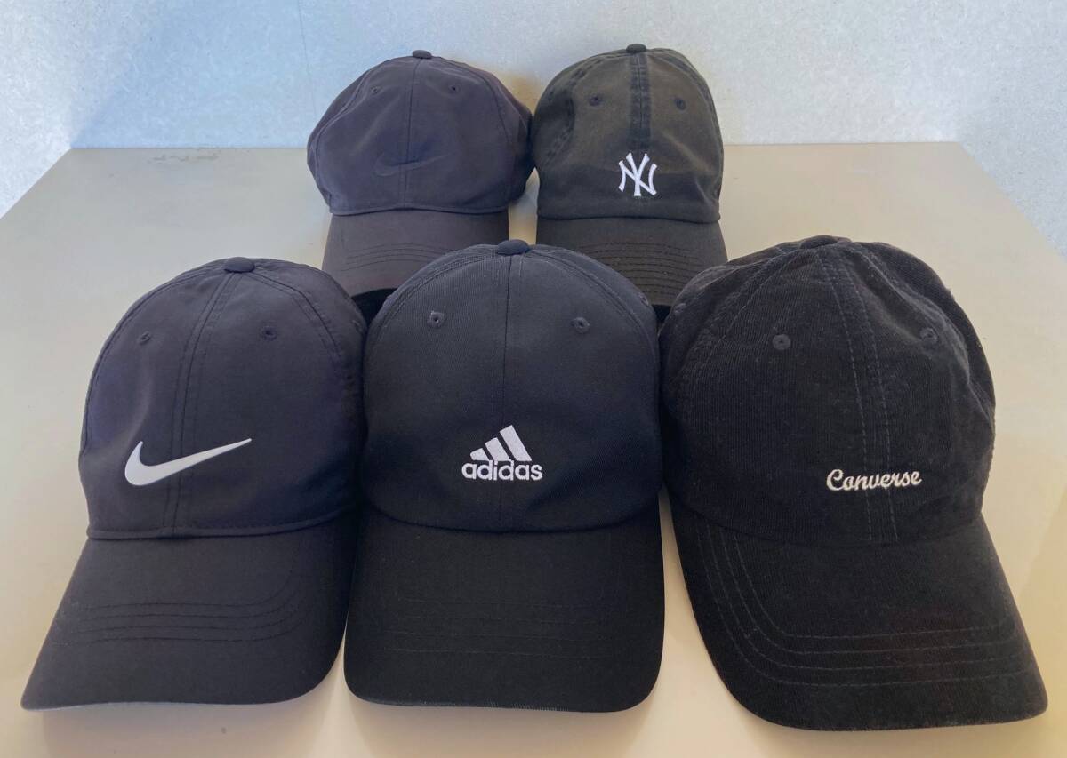 黒キャップ 5個 まとめ売り 古着 帽子 スポーツ ブランド ニューエラ ナイキ アディダス コンバース NEW ERA ブラック