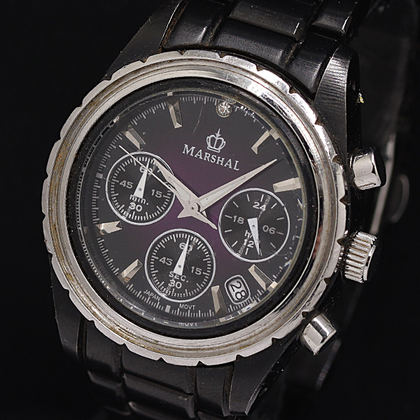1円 稼働 マーシャル クロノグラフ HL/21 QZ パープル文字盤 メンズ腕時計 2011000 11BJY MST