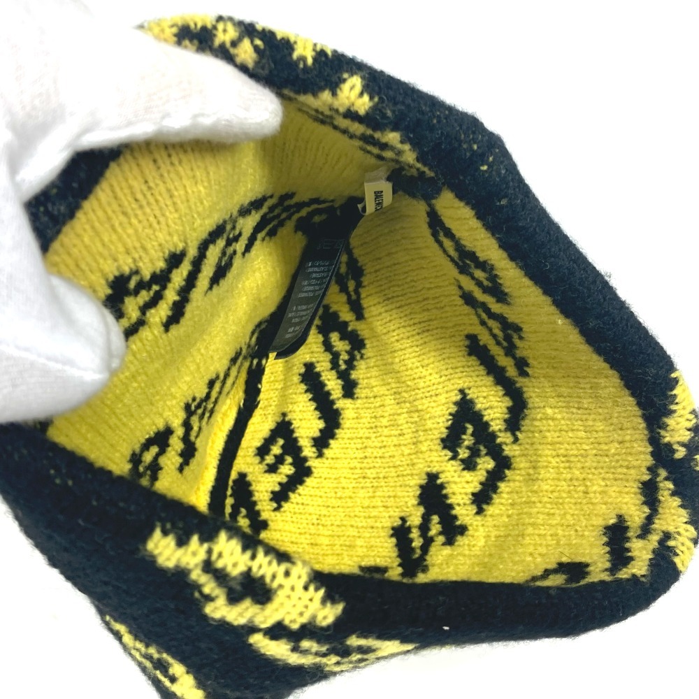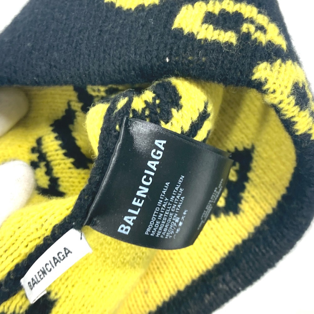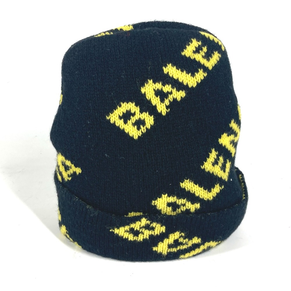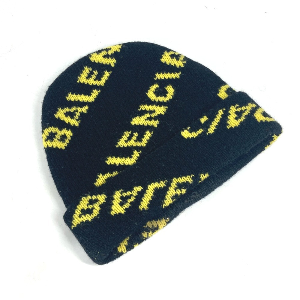 BALENCIAGA バレンシアガ 555282 ロゴ 総柄 ビーニー 帽子 ニット帽 ニットキャップ ニット帽 ブラック メンズ【中古】