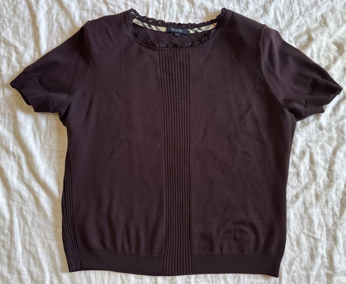バーバリーロンドン 半袖ニット ワインレッド 5 セーター ロゴ ウール 高級