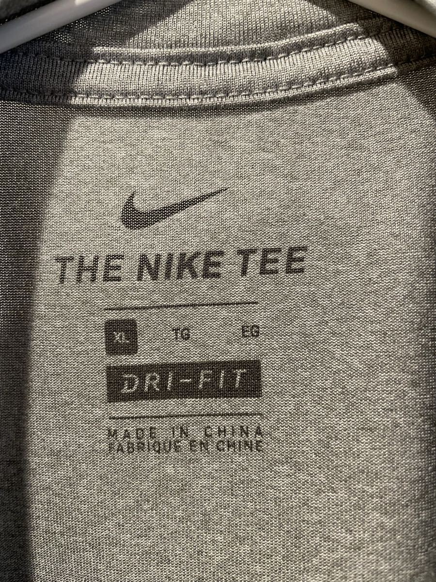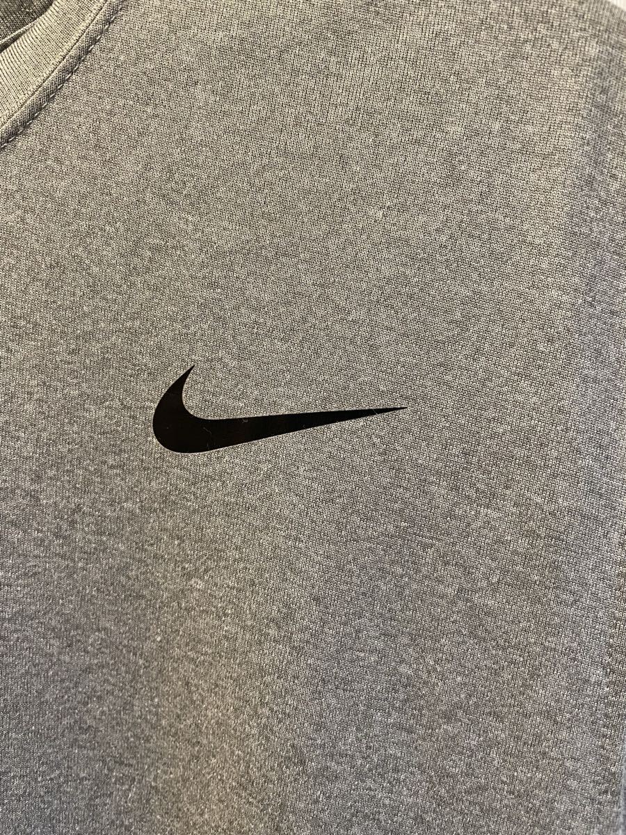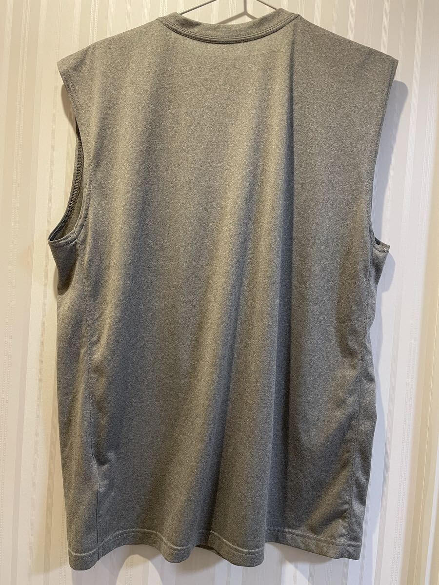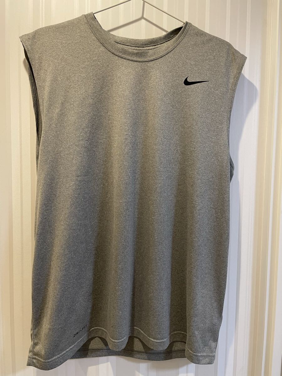 シンプルなグレーのNikeタンクトップ、スウッシュロゴ付き。