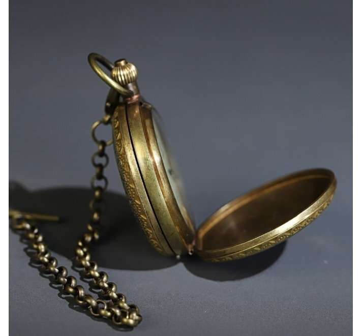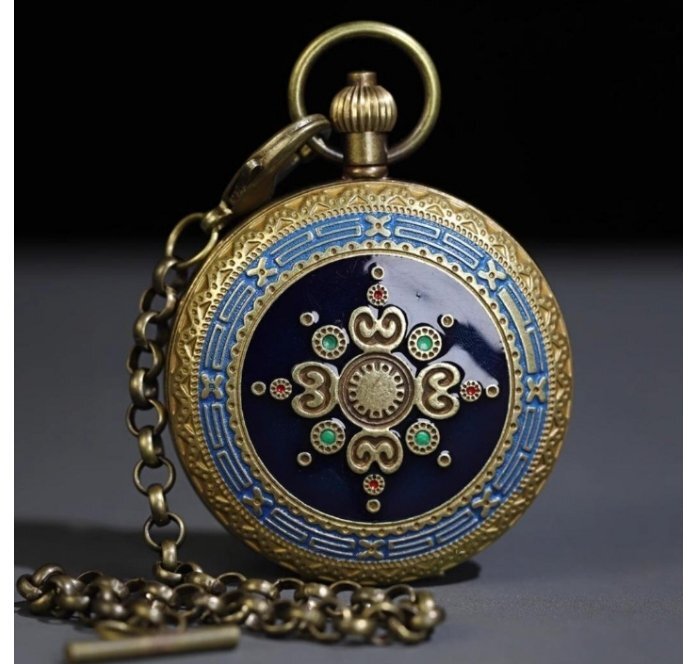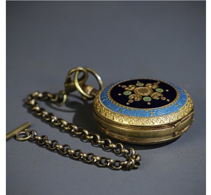 懐中時計 時計 復古 純銅 還流 西洋 エナメル彩 二開 機械レトロ 懐中時計