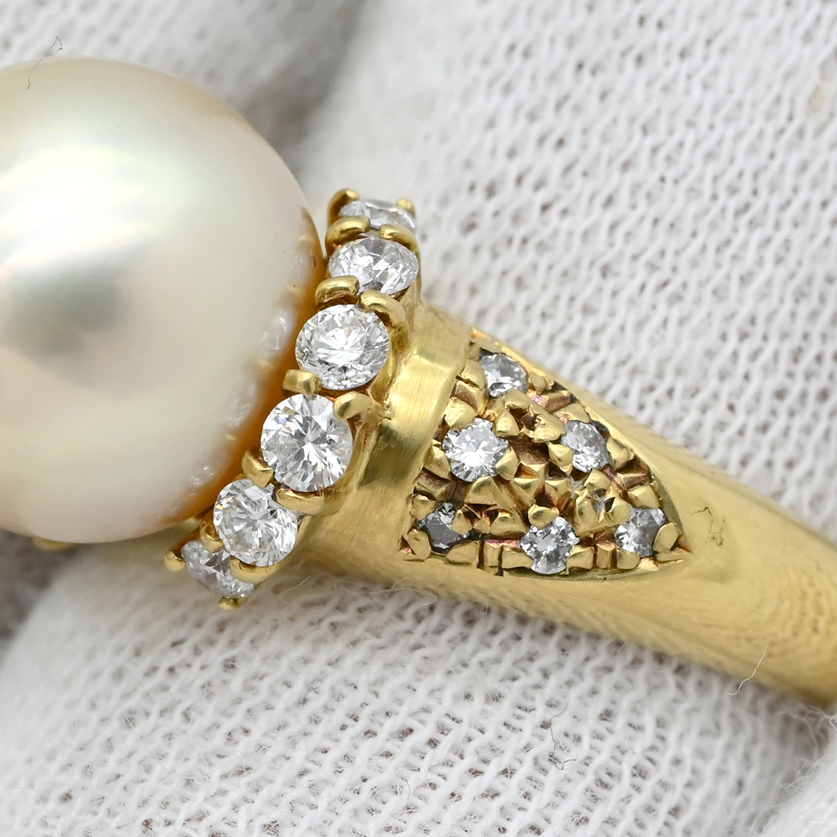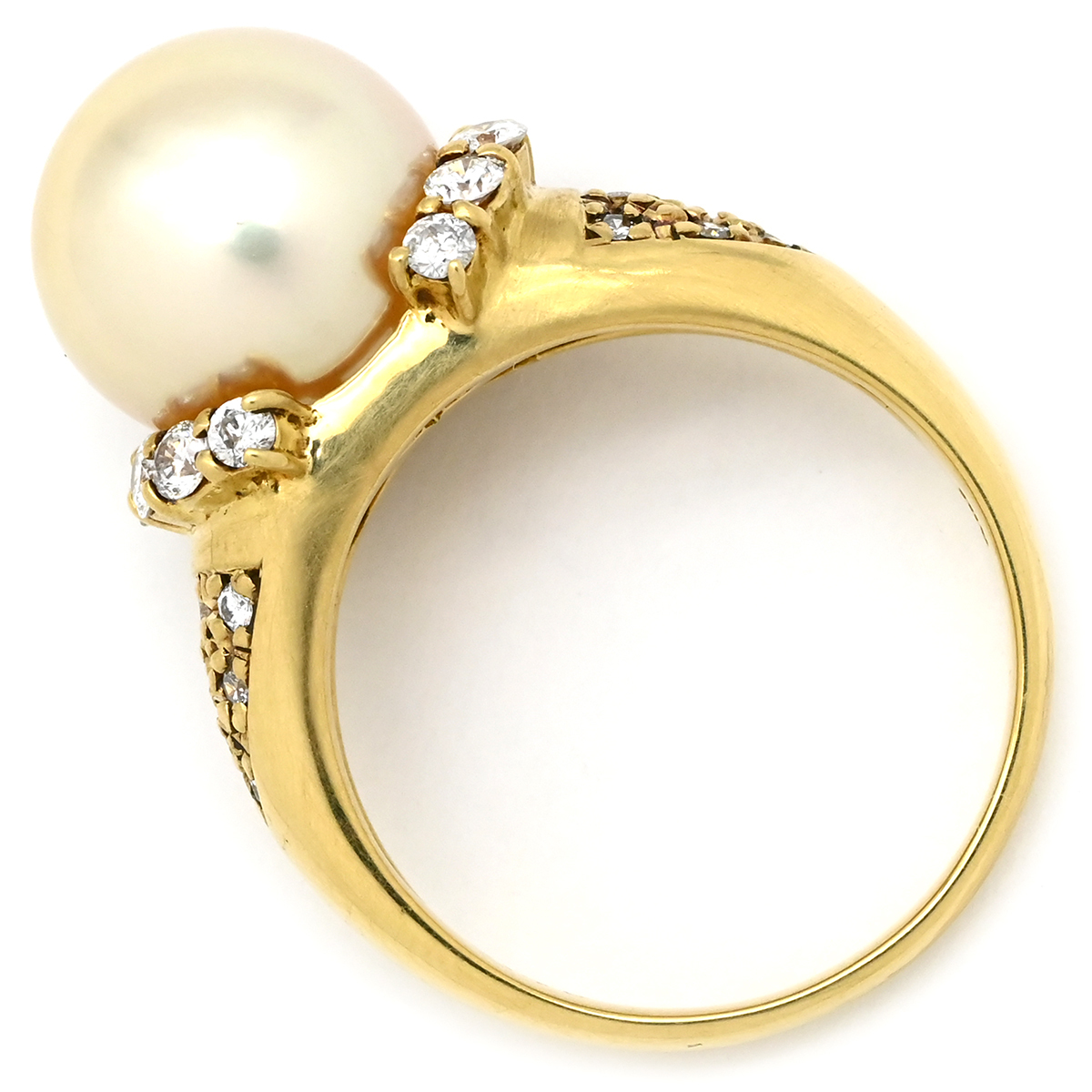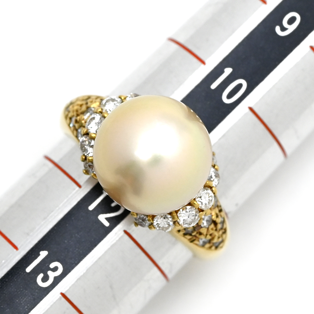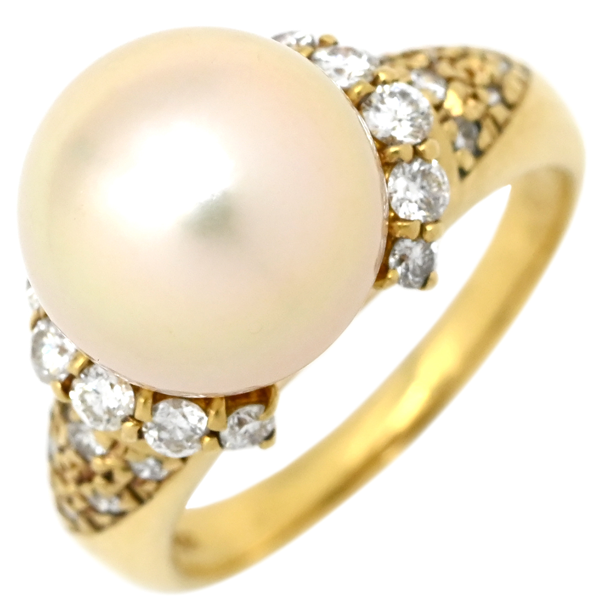 リング 指輪 パール ダイヤ リング K18YG ゴールド 1P 1粒 真珠 18K 18金 YG ダイヤモンド ゴールデンパール 中古