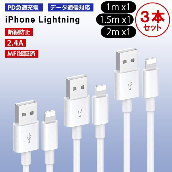 USB Type-A to Lightning ケーブル 1m 1.5m 2m各1本 3本セット | ||||