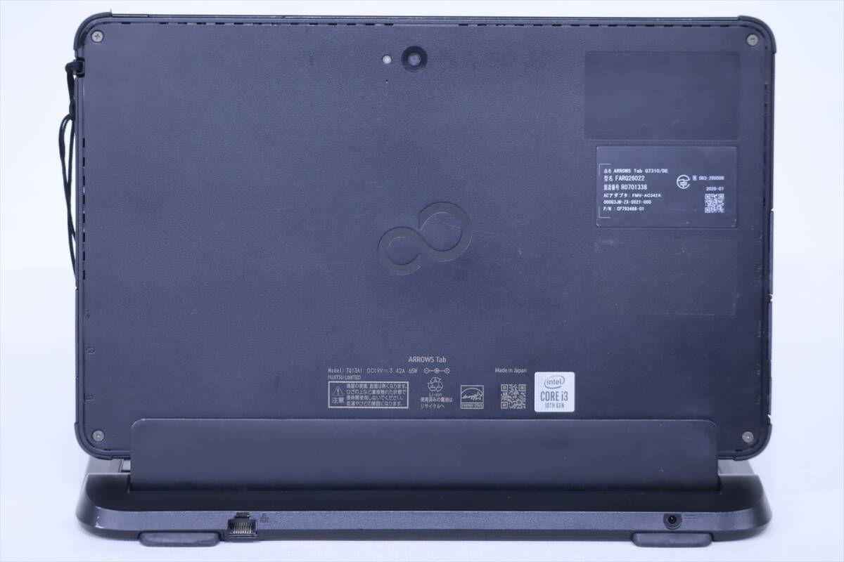 【メーカー】FUJITSU ノートパソコン タブレットPC 【型番/品名】ARROWS Tab Q7310/DE with KB FARQ26022 【CPU】Core i3-10110U 2.10GHz / 2コア4スレッド / ターボ・ブースト最大4.10GHz 【メモリ】4GB 【ストレージ】SSD 128GB NVMe 【ディスプレイ】13.3インチ FHD タッチパネル 解像度 1920x1080 ※カテゴリ--13.0~13.9インチ 【グラフィック】Intel(R)内蔵グラフィックス 【光学ドライブ】-- 【Webカメラ】搭載 【無線LAN】Wi-Fi 6(IEEE802.11ax)対応 【その他装備】Bluetooth (※その他インターフェースは画像とメーカーページ等でご確認ください。) 【OS】Windows11Home-64bit 【Officeソフト】アプリ無し(Microsoft Web版Officeご利用可) 【ウイルス対策】Windows Defender、Windowsファイアウォール 【寸法/質量】(W×D×H)315×200.9×10.65mm/質量 約790g(仕様・構成により変動する場合あり) 【付属品】ACアダプタ、純正キーボード 【メーカーページ】(スペック完全一致でない場合あり) https://jp.fujitsu.com/platform/pc/product/arrowstab/2005/q7310de/spec.html 【取扱説明書】(機種・型番完全一致でない場合あり) https://www.fmworld.net/biz/fmv/support/fmvmanual/arrows/q7310de.html