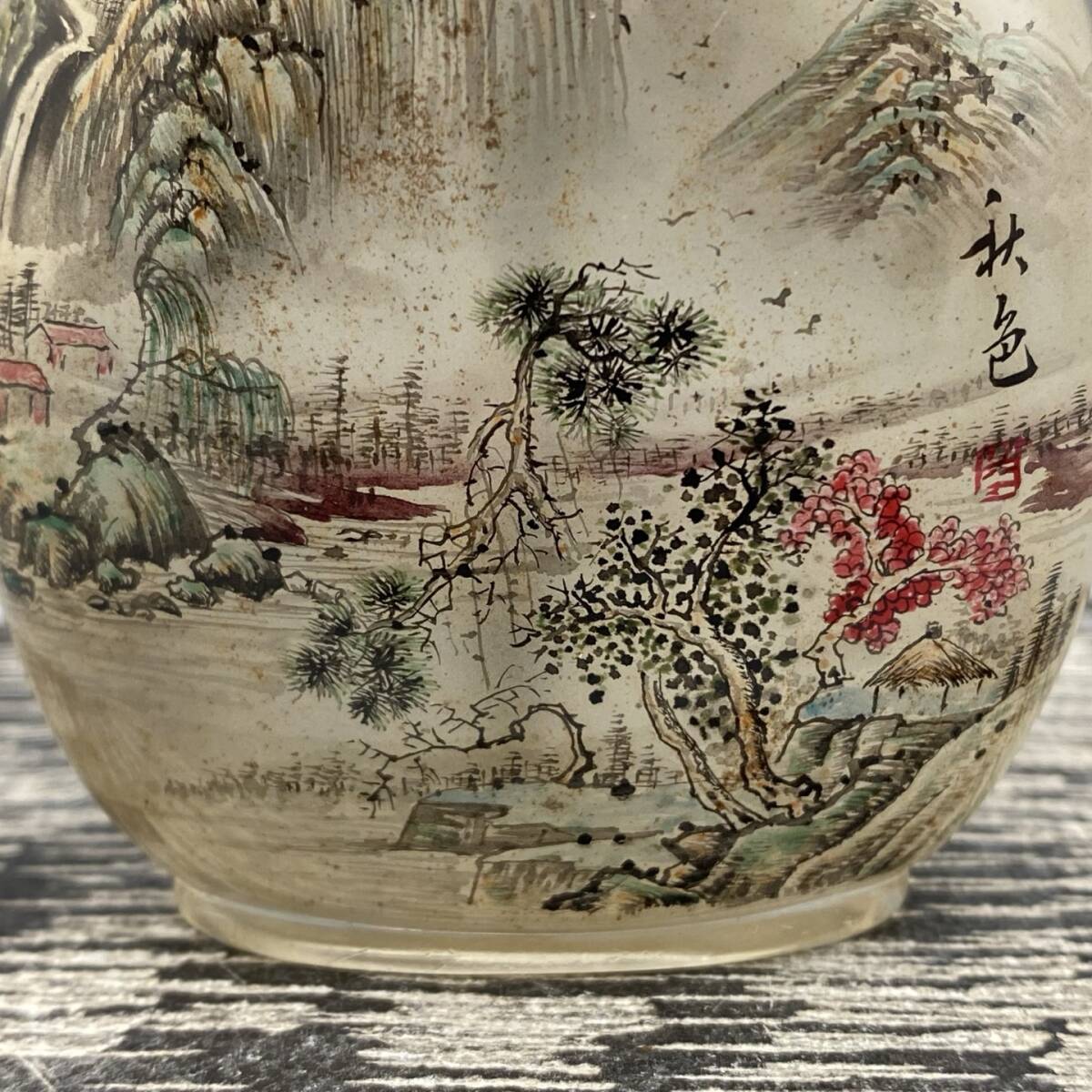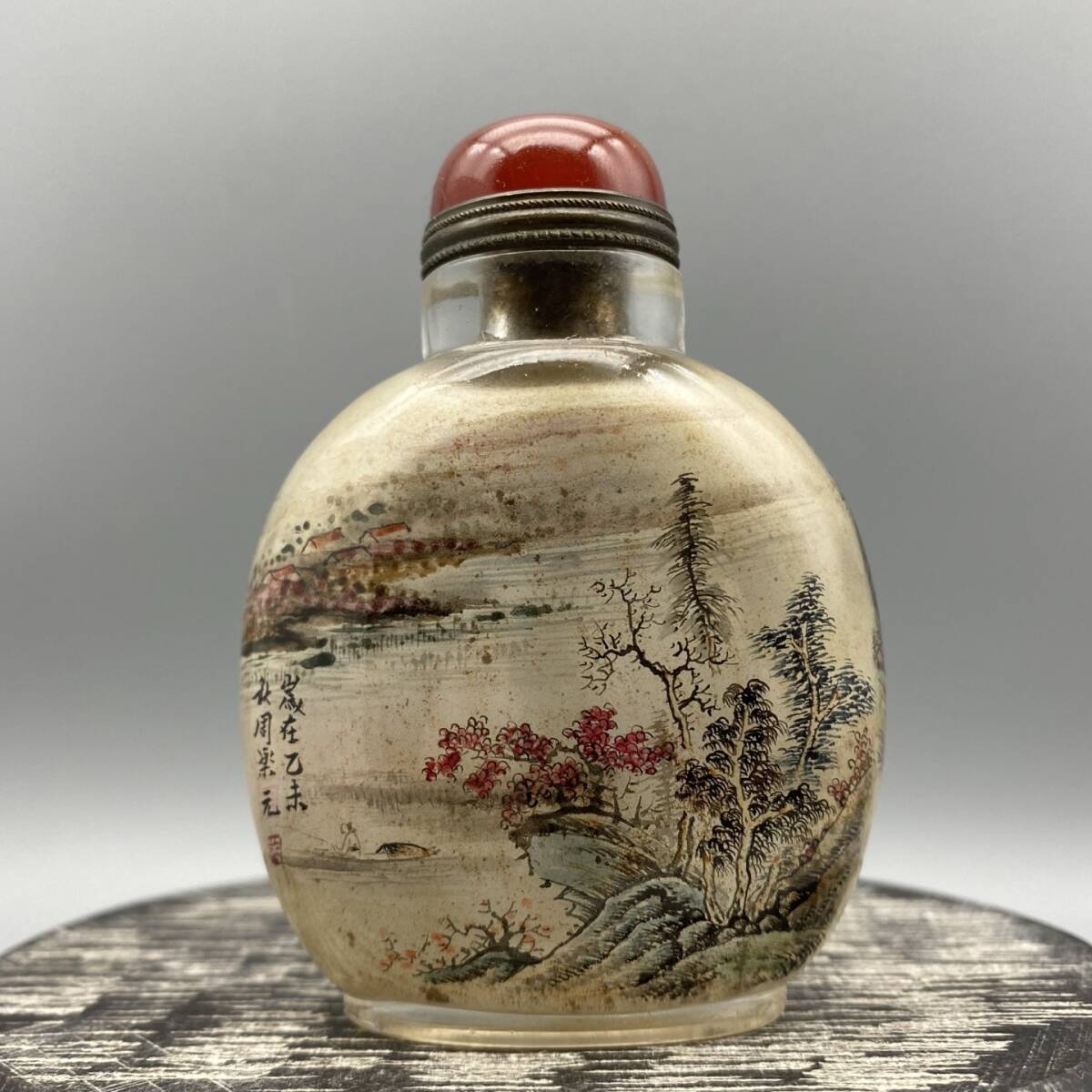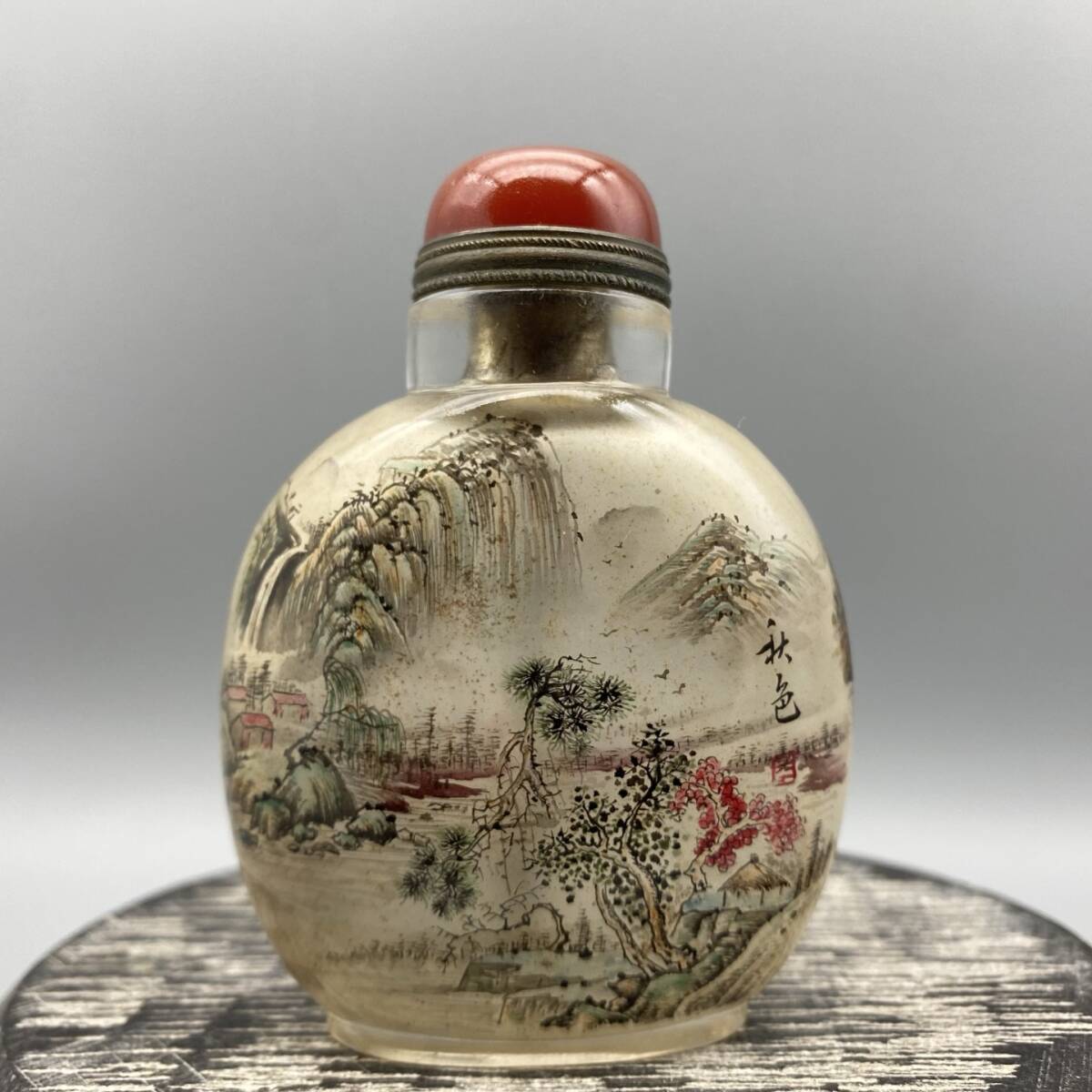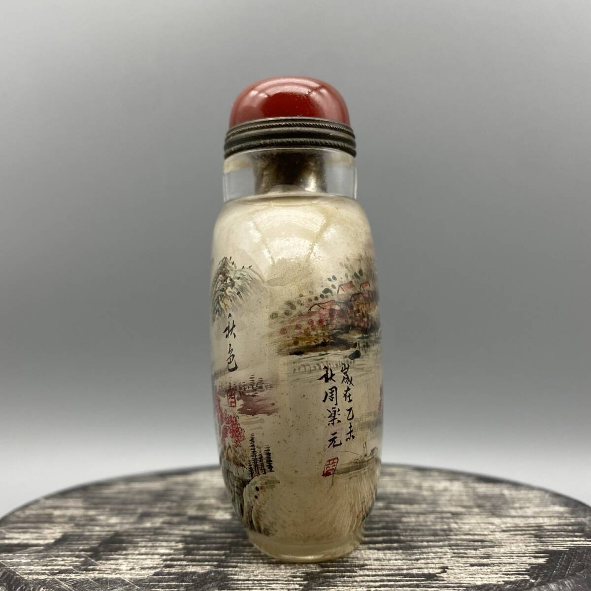 館蔵 古瑠璃彫 肉筆 手絵 秋色 山水人物紋 鼻煙壺 根付 貴重 稀少珍品 中国古美術 古美味 蔵出