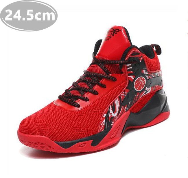 メンズ スニーカー レッド 24.5cm 靴 シューズ 防滑 バスケットシューズ 通勤 通学 旅行 【238】