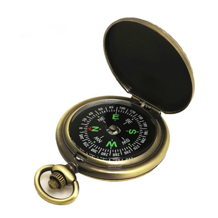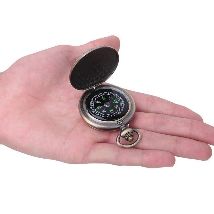 ◆懐中時計式コンパス 方位磁石 懐中時計のデザイン ボタンで蓋開き 生活防水 アウトドア キャンプ ハイキング 登山 防災 レトロデザイン 羅針盤 軽量 コンパクト CPJ35A