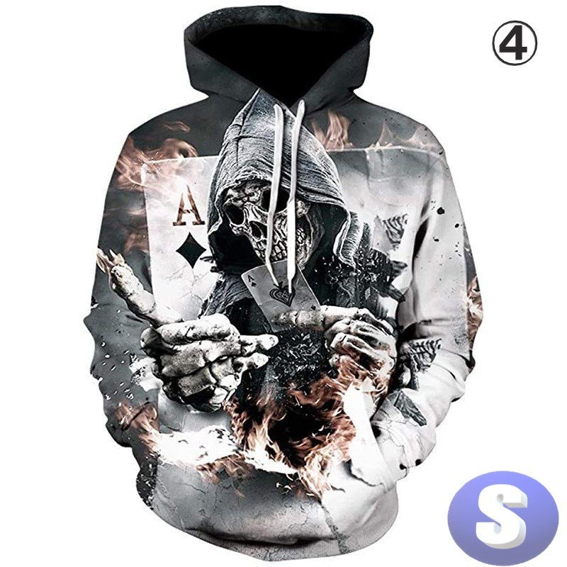 フード付き ドクロパーカー カラー4 S トレーナー アウター 防寒 n712