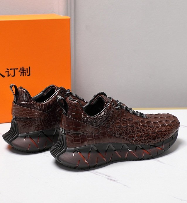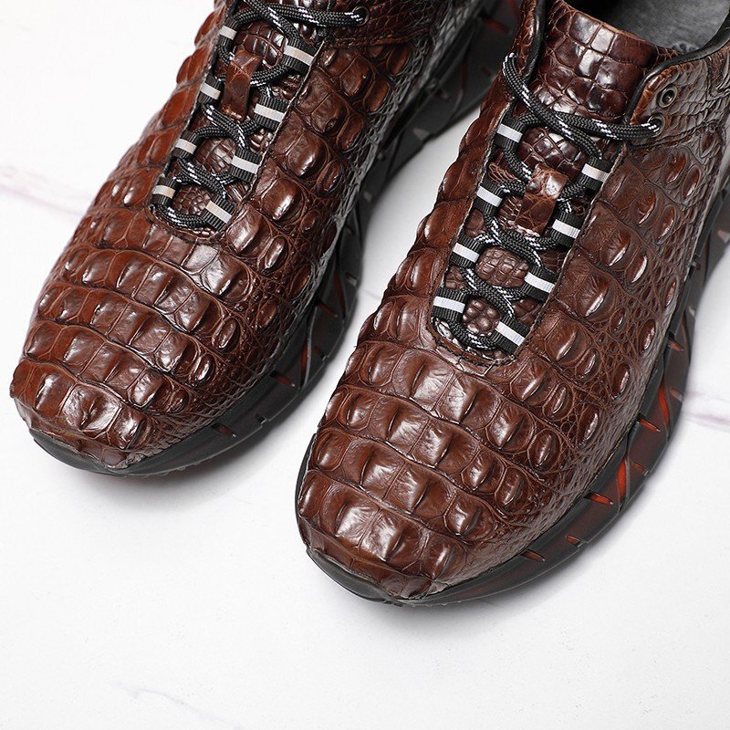 クロコダイルレザー スニーカー 最高級 ワニ革 クロコダイル 靴 メンズシューズ 革靴 ブラウン 24.5cm 【n789】