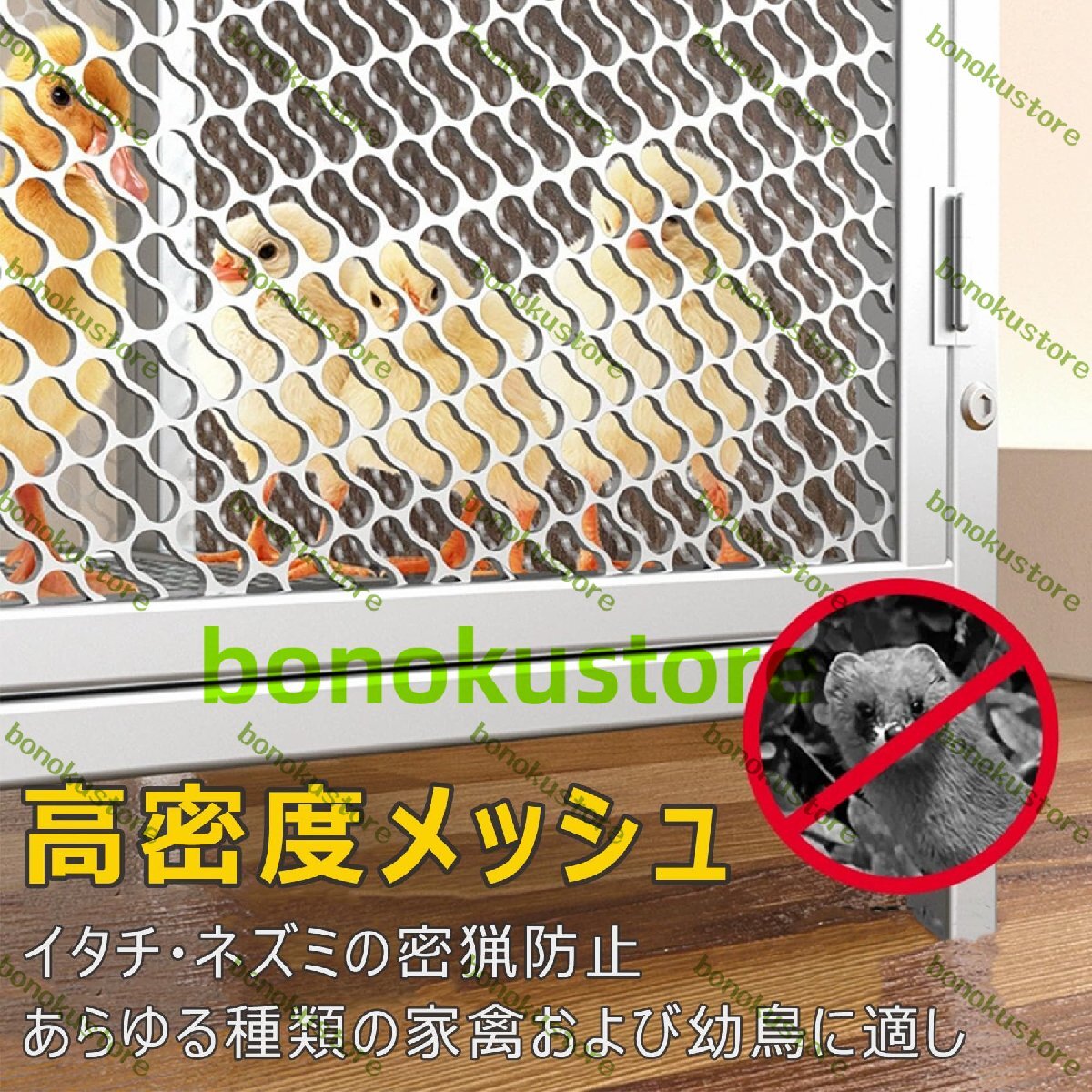 【全面保護・安全飼育】:高密度金属メッシュが全面保護を実現し、イタチやネズミなどの天敵の侵入を効果的に防ぎ、各種家禽や幼鳥に安全な飼育環境を作り出します。