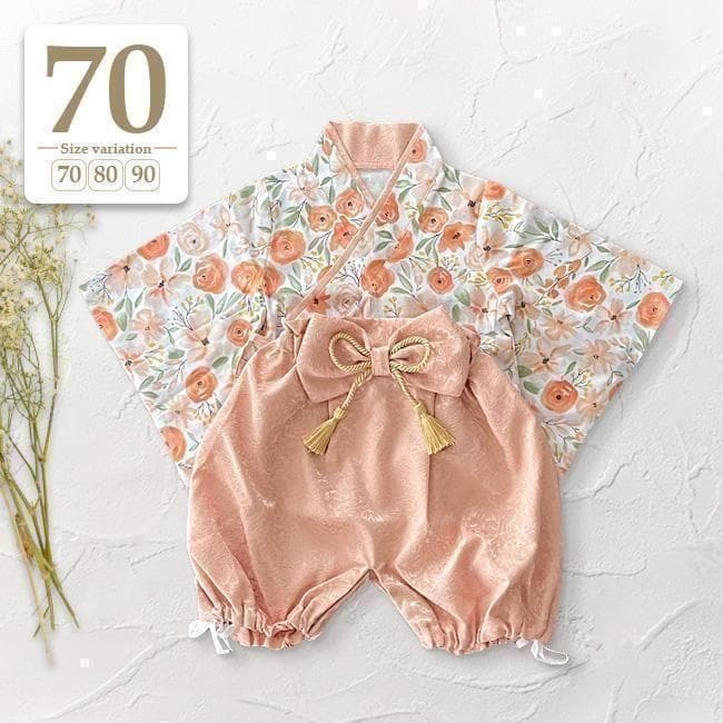 新品 70cm ジャガードピンク〔#BMセパレート袴〕セット 袴ロンパース ベビー 子供 女の子 初節句 ひな祭り お雛まつり 七五三 着物 和服