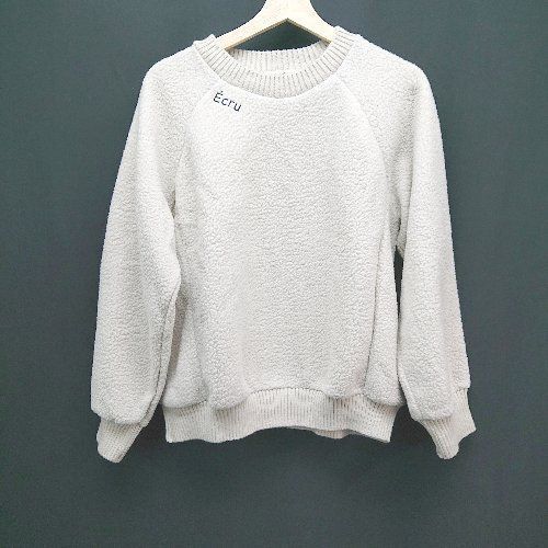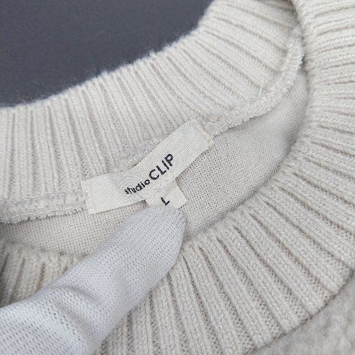 ◇ studio CLIP ファー生地 モコモコ ふわふわ ロゴ カジュアル 長袖 ニット セーター サイズL アイボリー レディース E