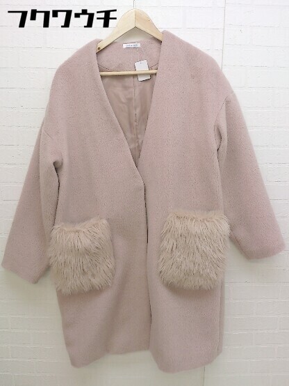 ■ OLIVE des OLIVE オリーブデオリーブ 起毛 フェイクファー ノーカラー コート サイズM ピンク レディース