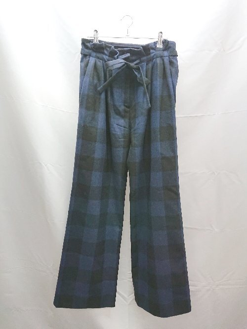◇ BACCA バッカ チェック柄 ウエスト紐リボン パンツ サイズ34 ネイビー レディース E