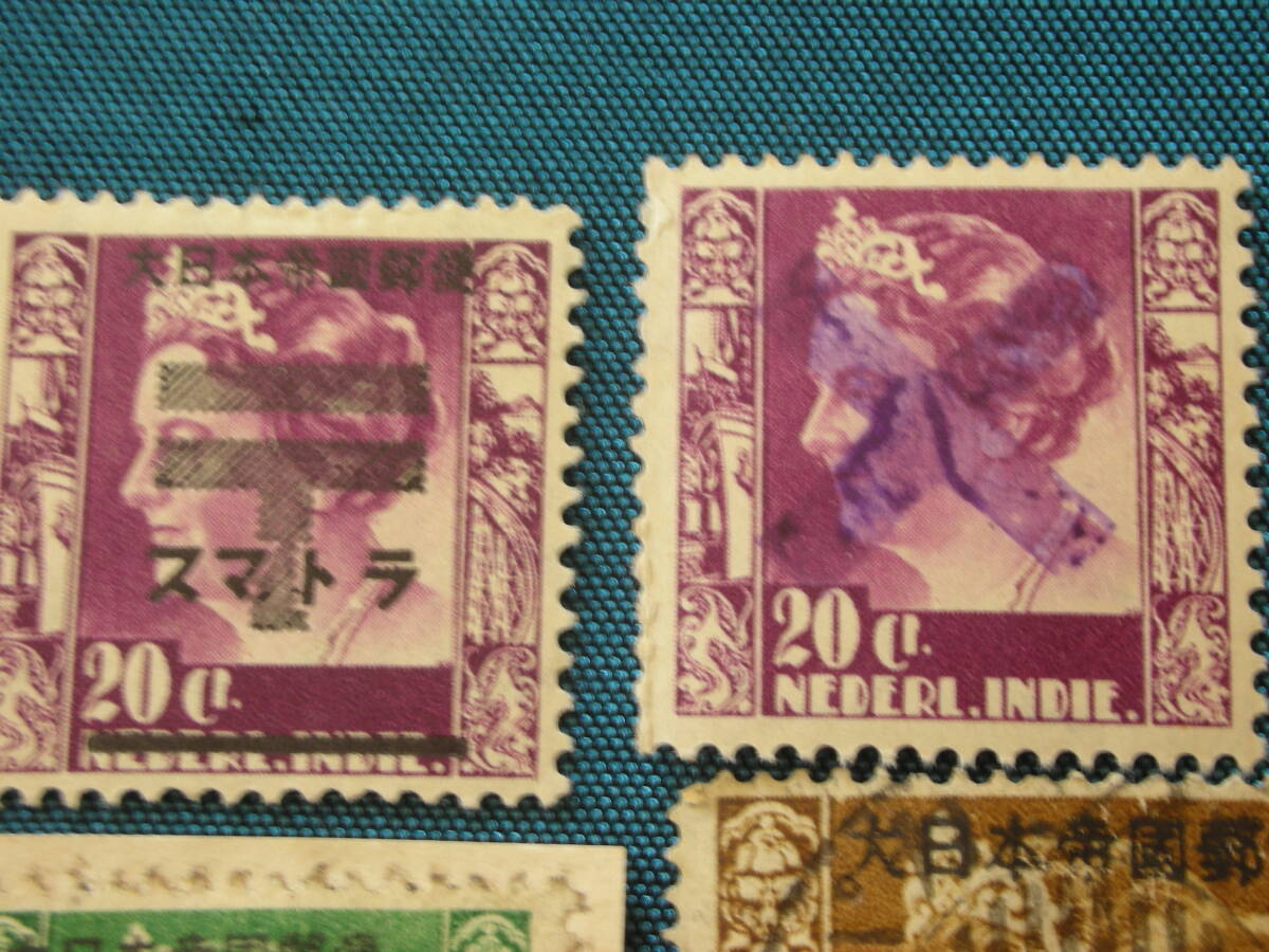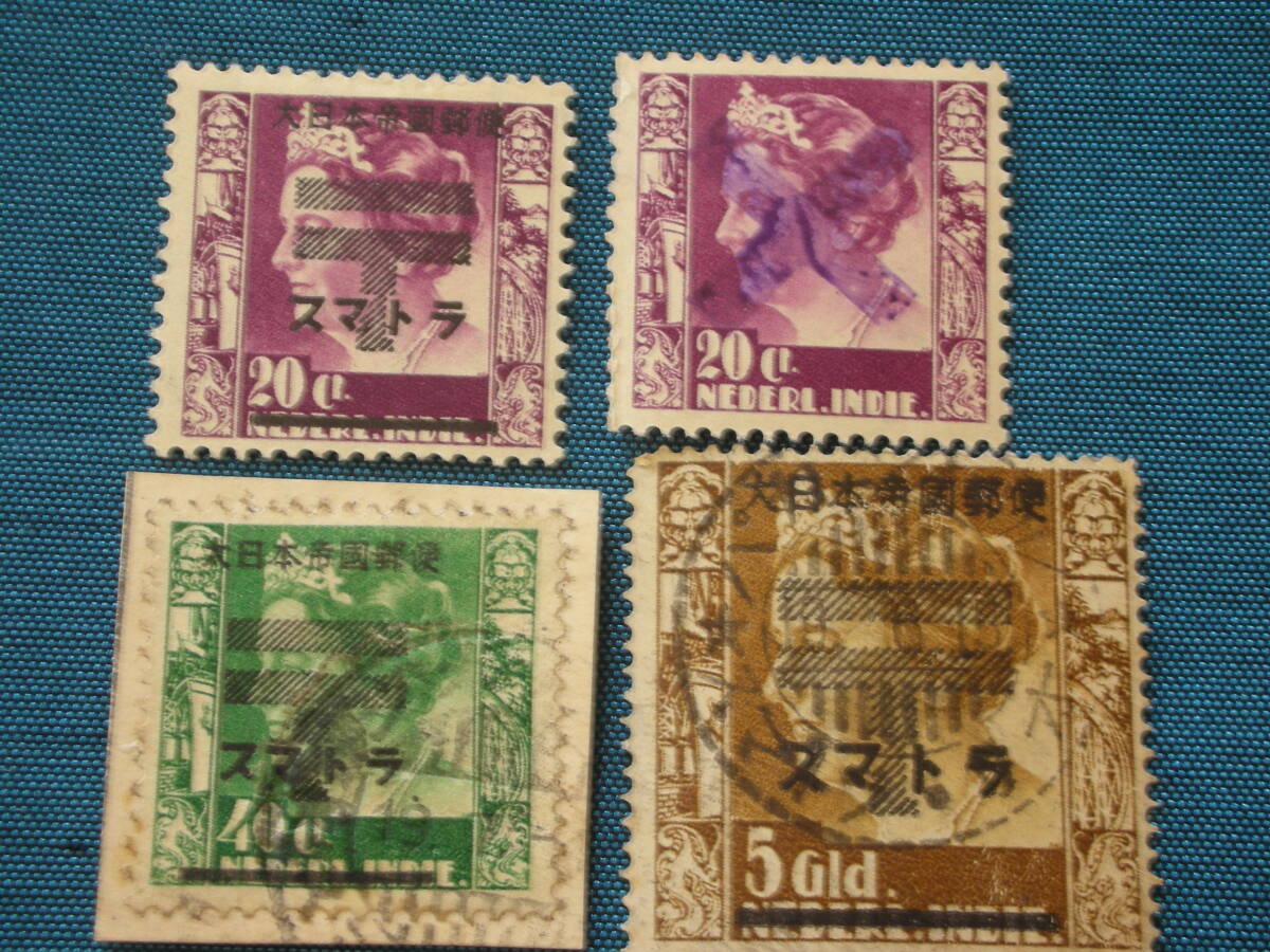 南方占領;蘭印スマトラ 統一加刷他 T41 旧女王 20.20,40C, 5G 型価4千円