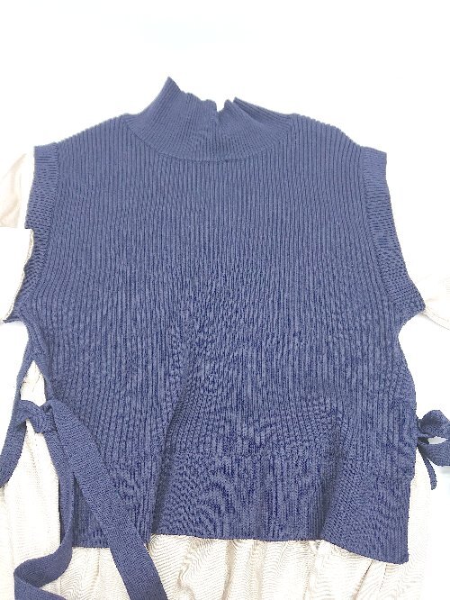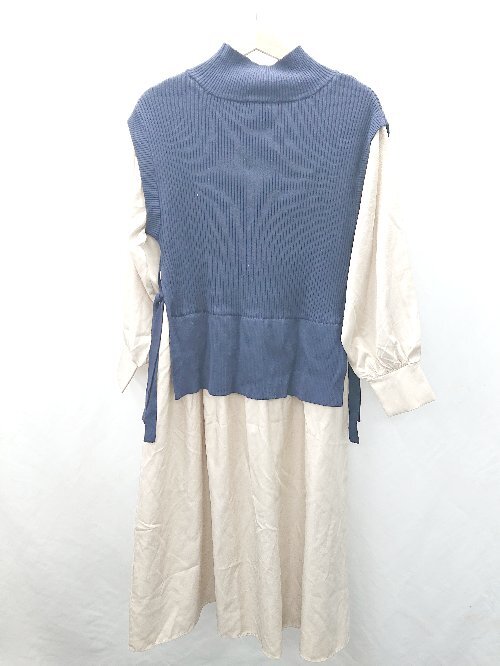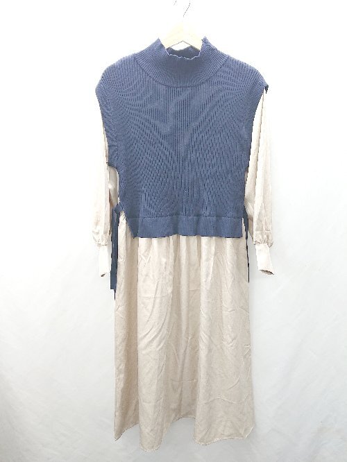 ◇ ⊇ ITEMS URBANRESEARCH レイヤードニット 長袖 ロング丈 ワンピース サイズF ベージュ ネイビー レディース E