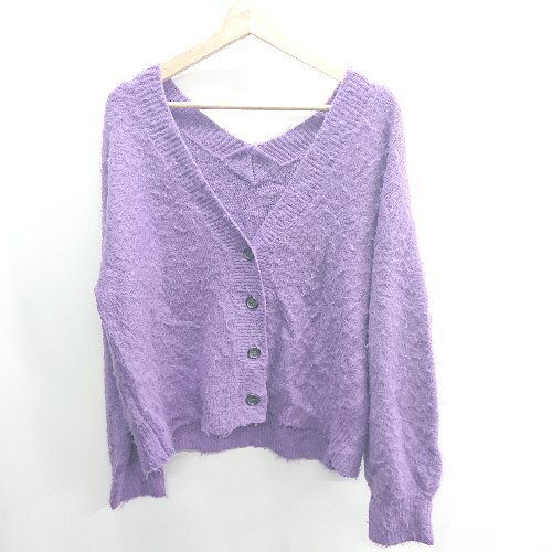 ◇ ⊇ LOWRYS FARM Vネック 長袖 ニットカーディガン サイズF パープル レディース E