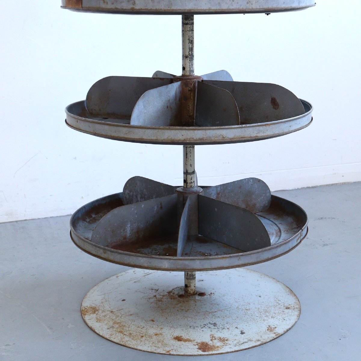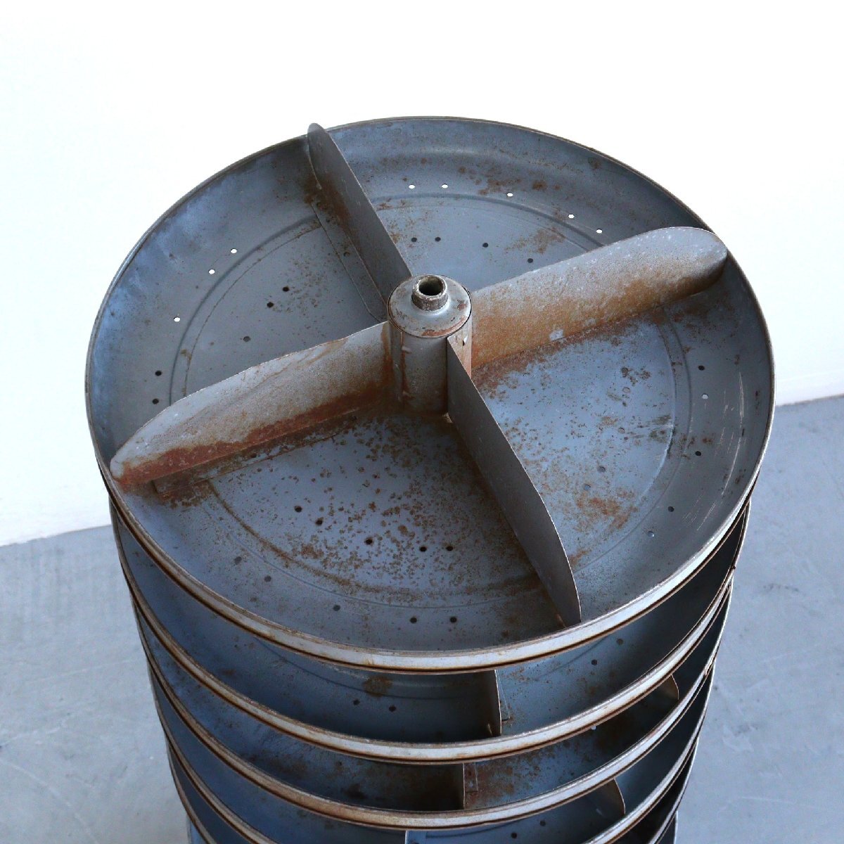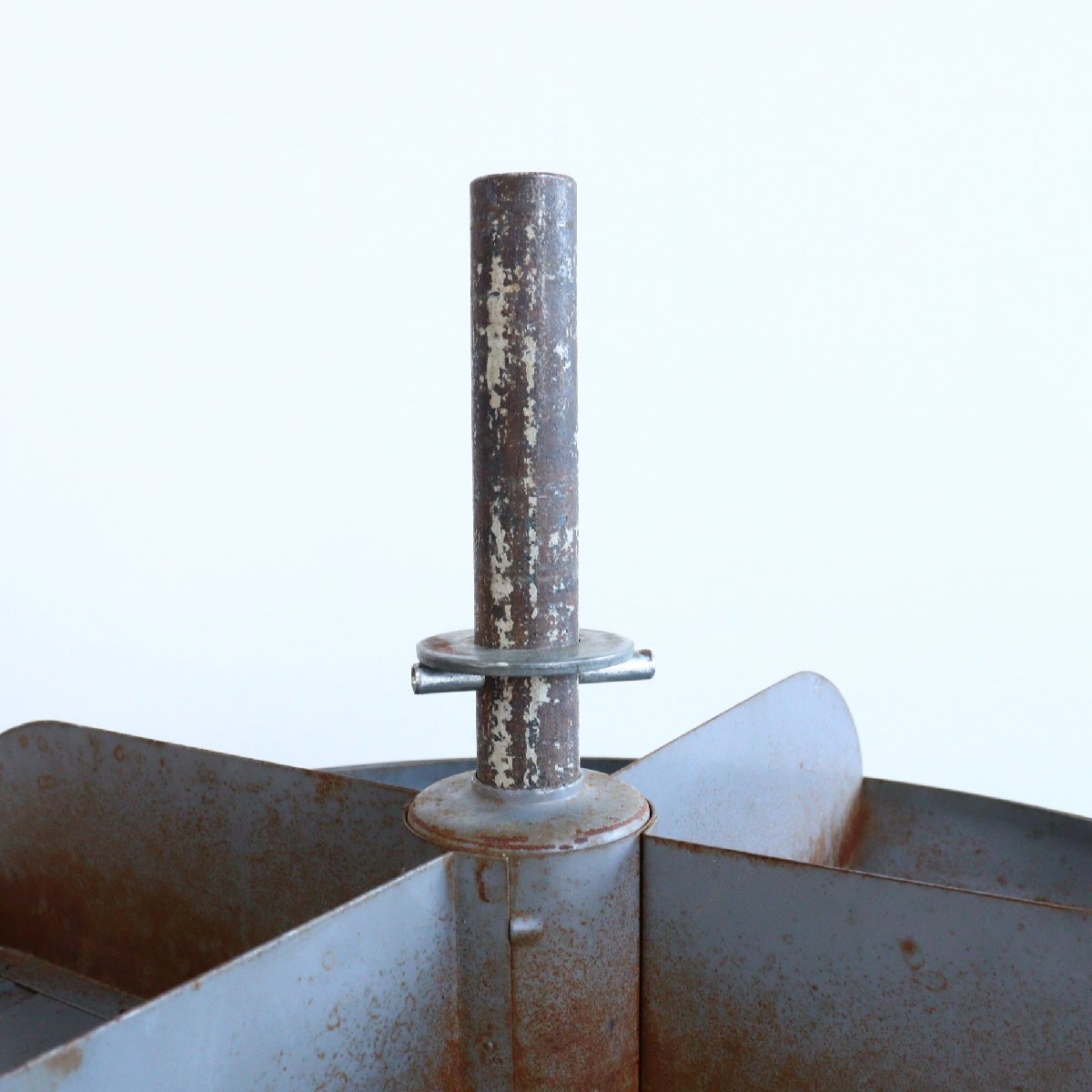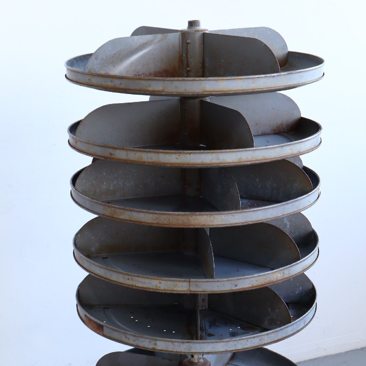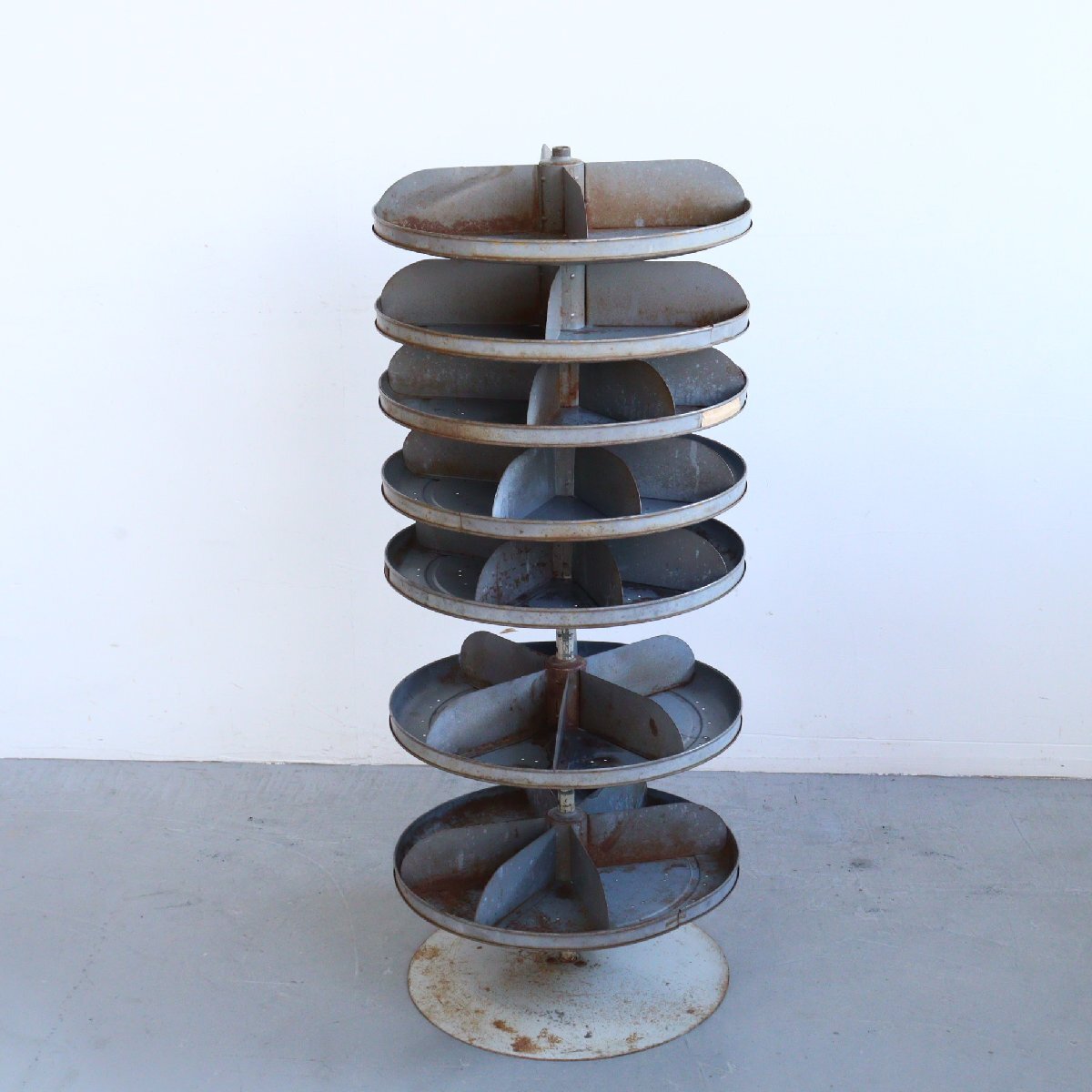 | 商品説明 explanation | 推定1950年代頃の円形ツールラックです。 元々は工場などの作業場で使われていたモノで、ラック部分は回転し、非常に使い勝手が良いです。 サビた質感がヴィンテージらしさ満載で、工具やパーツなどの収納にはもちろん、小物や雑貨のディスプレイにも最適です。 ガレージや店舗什器にいかがでしょうか。 |