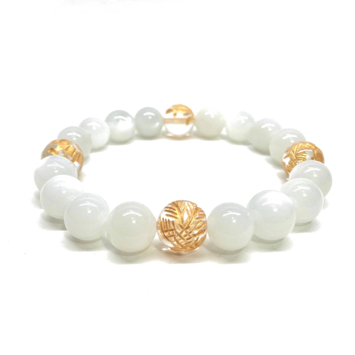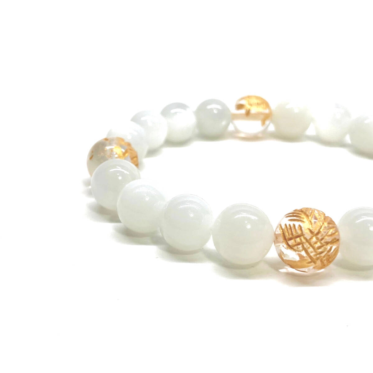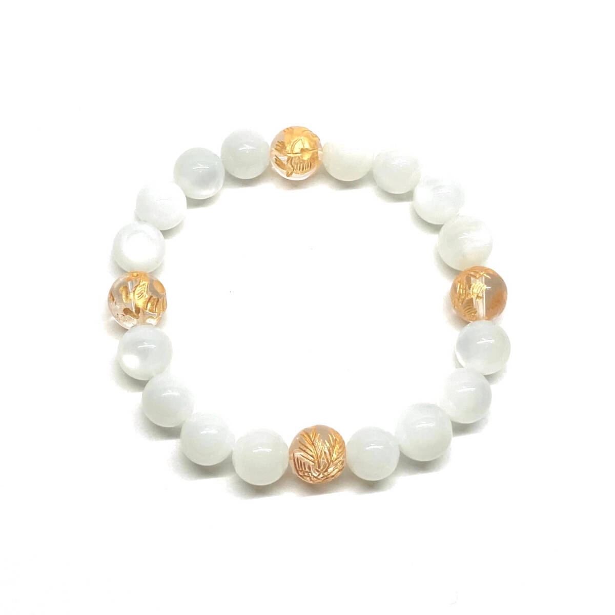 10mm 四神獣金彫水晶×ムーンストーン パワーストーン ブレスレット天然石 運気上昇 開運 幸運 恋愛運 青龍 白虎 玄武 朱雀 ☆