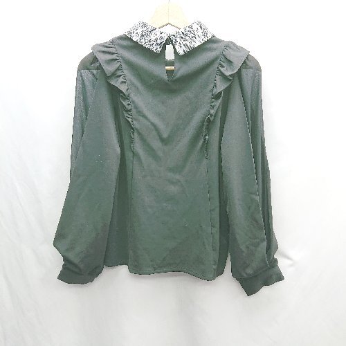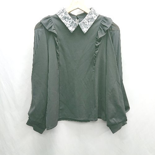◇ ⊇ Bye Bye レース フリル装飾 長袖 ブラウス サイズM ブラック ホワイト レディース E