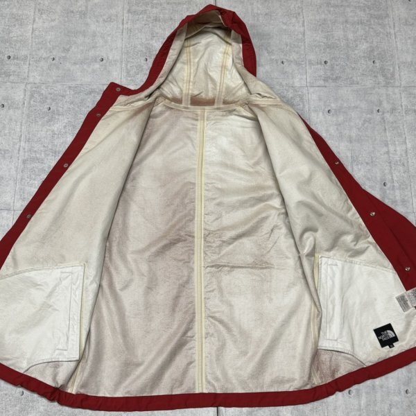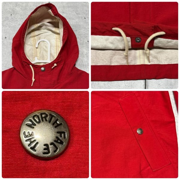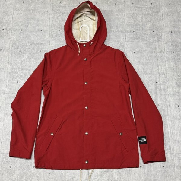 THE NORTH FACE ナイロンジャケット レッド 単色 ノースフェイス  フーデッド コーティングキャンプコート ロゴボタン アウトドア YL3069