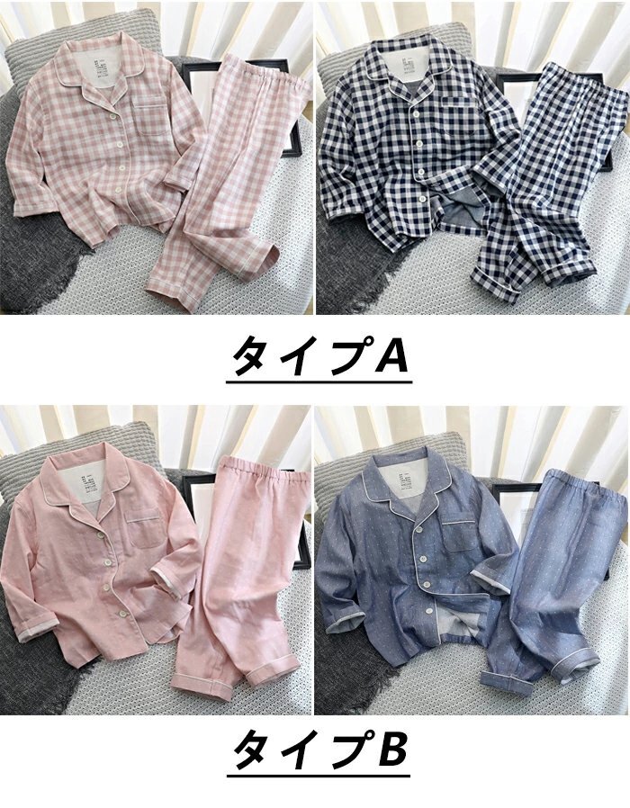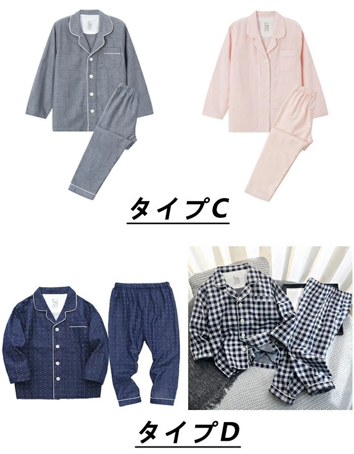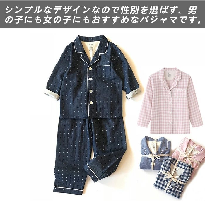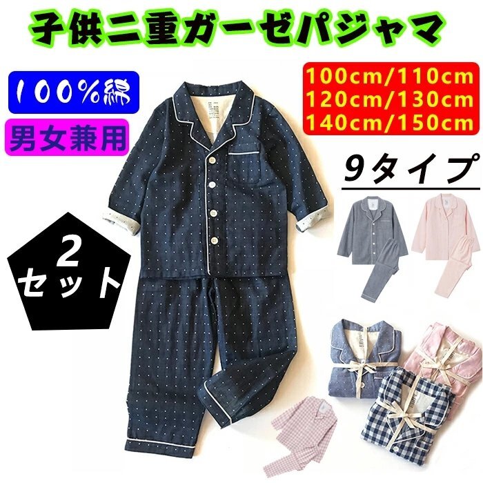 【2セット】パジャマ キッズ 子供ルームウェア 長袖 綿100% ダブルガーゼ 女の子 男の子 春夏 子供服 前開き ☆9色/100~150選択/1点