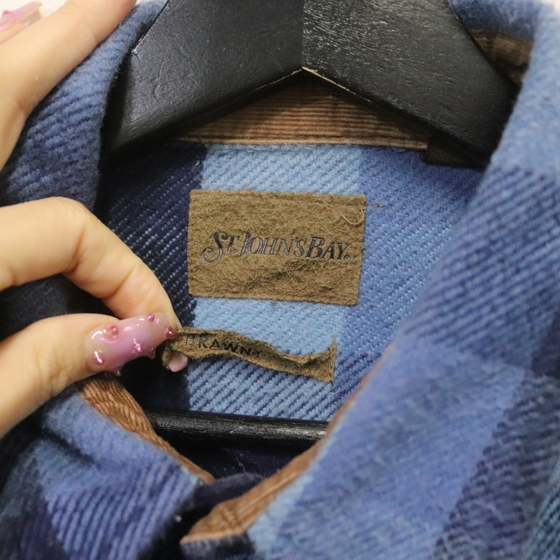 商品名 W47 90sビンテージ STJOHNSBAY セントジョンズベイ 長袖シャツ ヘビーネル■1990年代製 表記Lサイズ ブルー 青 チェック 古着 古着卸 激安
