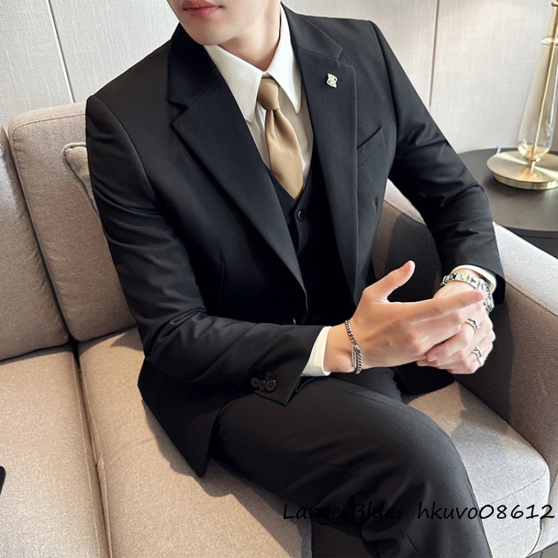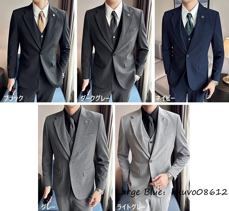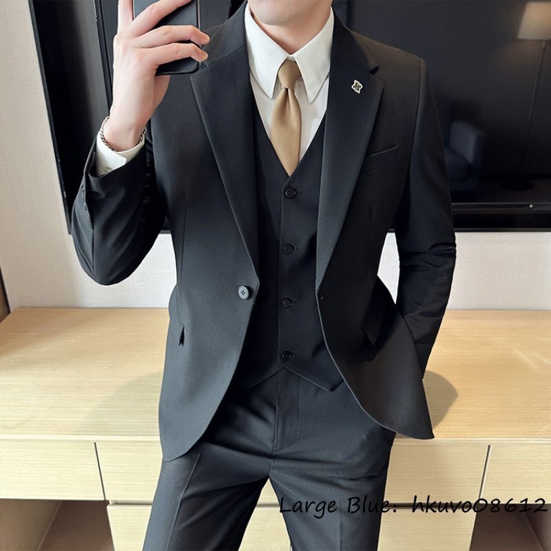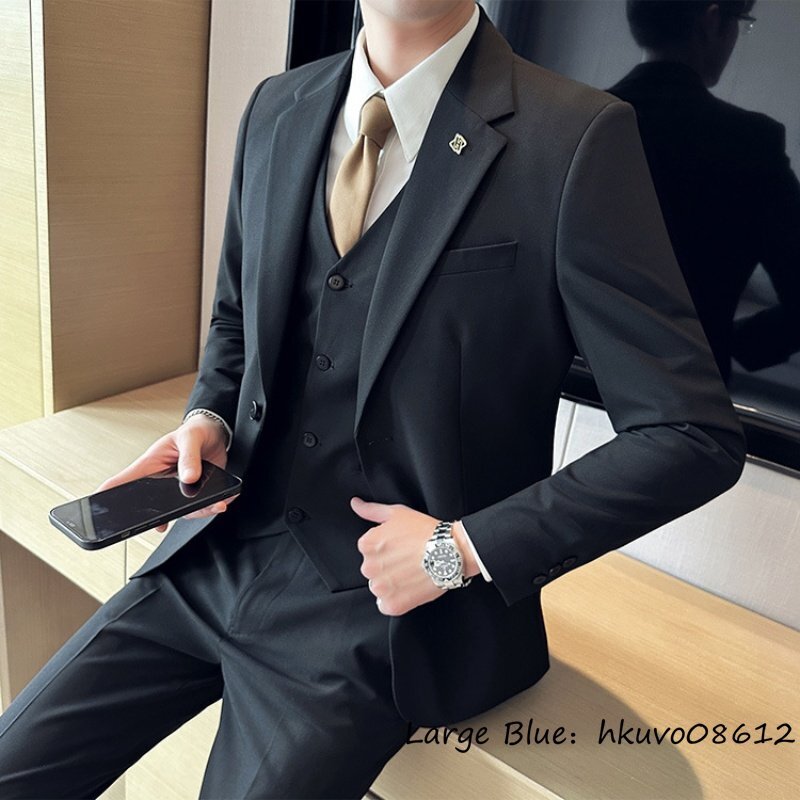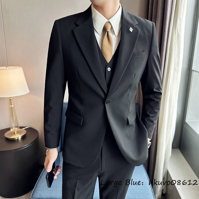 新品 メンズ スリーピース スーツセット 結婚式 スタイリッシュ 高級スーツ スリム 細身 3点セット 無地 一つボタン 紳士 ブラック M