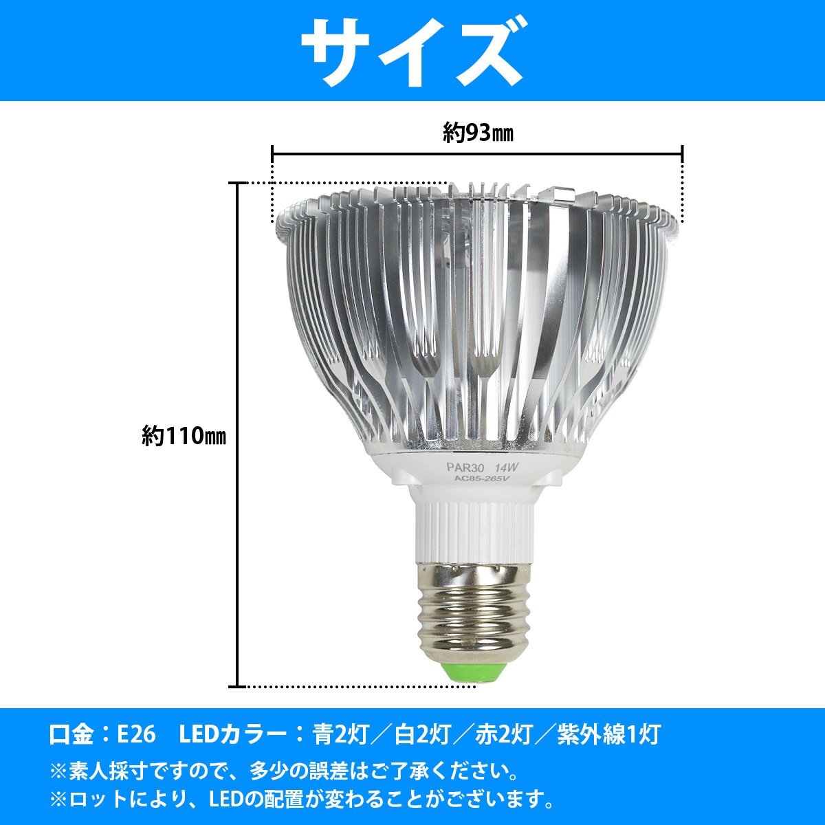 【新品即納】 水槽 スポット ライト 電球 7LED 14W 白2/青2/赤2/紫外線1 口金 E26 アクアリウム 電球 照明 植物育成 水草 サンゴ 熱帯魚