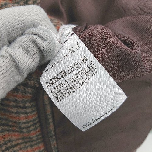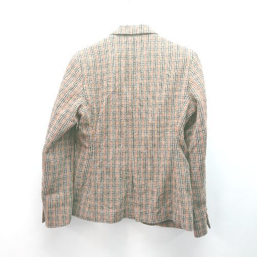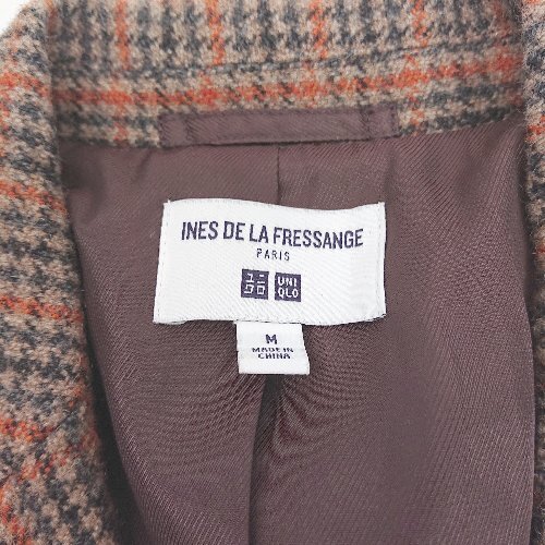◇ UNIQLO シングルボタン チェック柄 バックスリット 厚手 長袖 ジャケット サイズM ブラウン/オレンジ レディース E