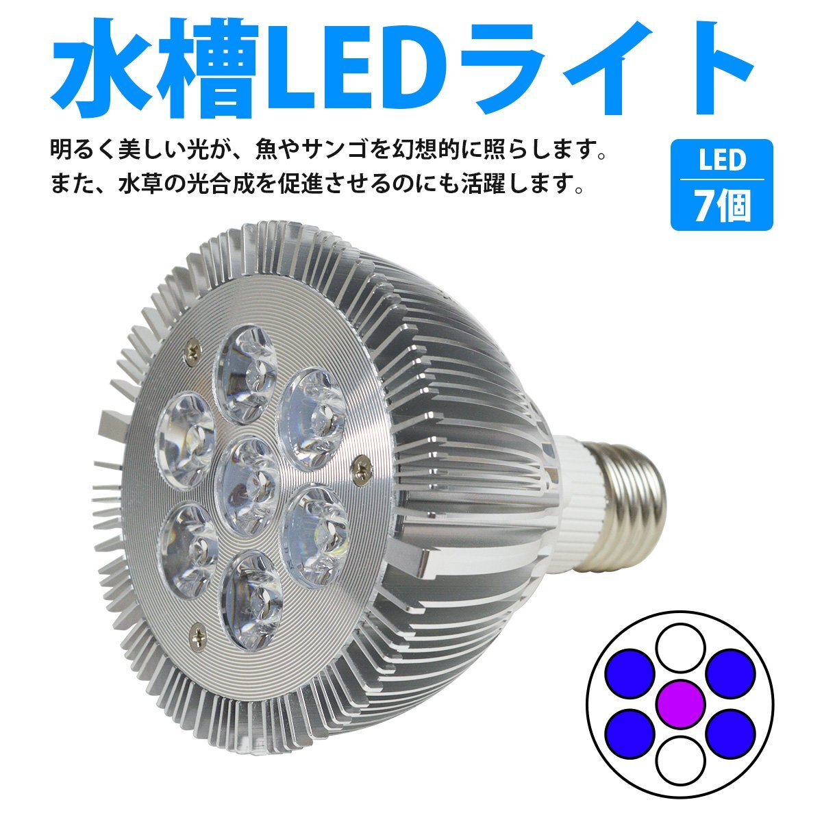 【新品即納】 水槽 用 スポット ライト 14W 電球 7LED 青4/白2/紫外線1 口金 E26 アクアリウム 電球 照明 植物育成 水草 サンゴ 熱帯魚