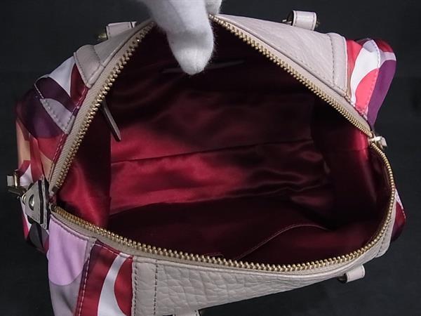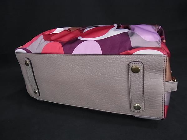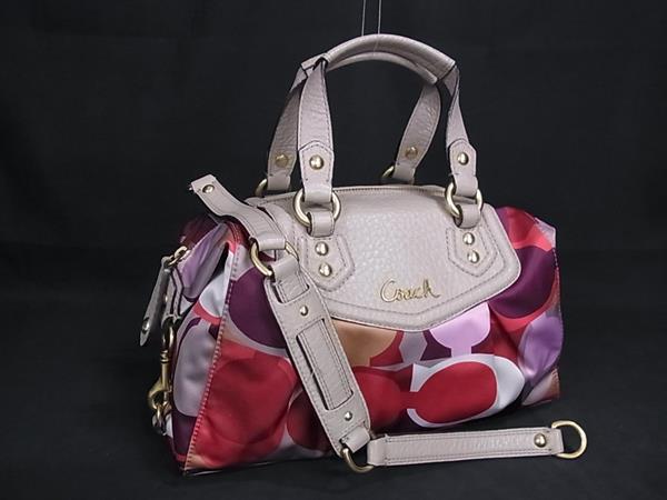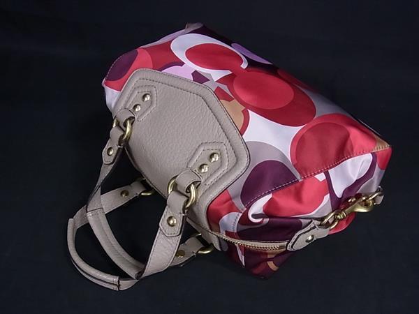 1円 ■美品■ COACH コーチ F21702 シグネチャー ナイロン×レザー 2WAY ハンドバッグ ショルダーバッグ レッド系×ベージュ系 BP6105