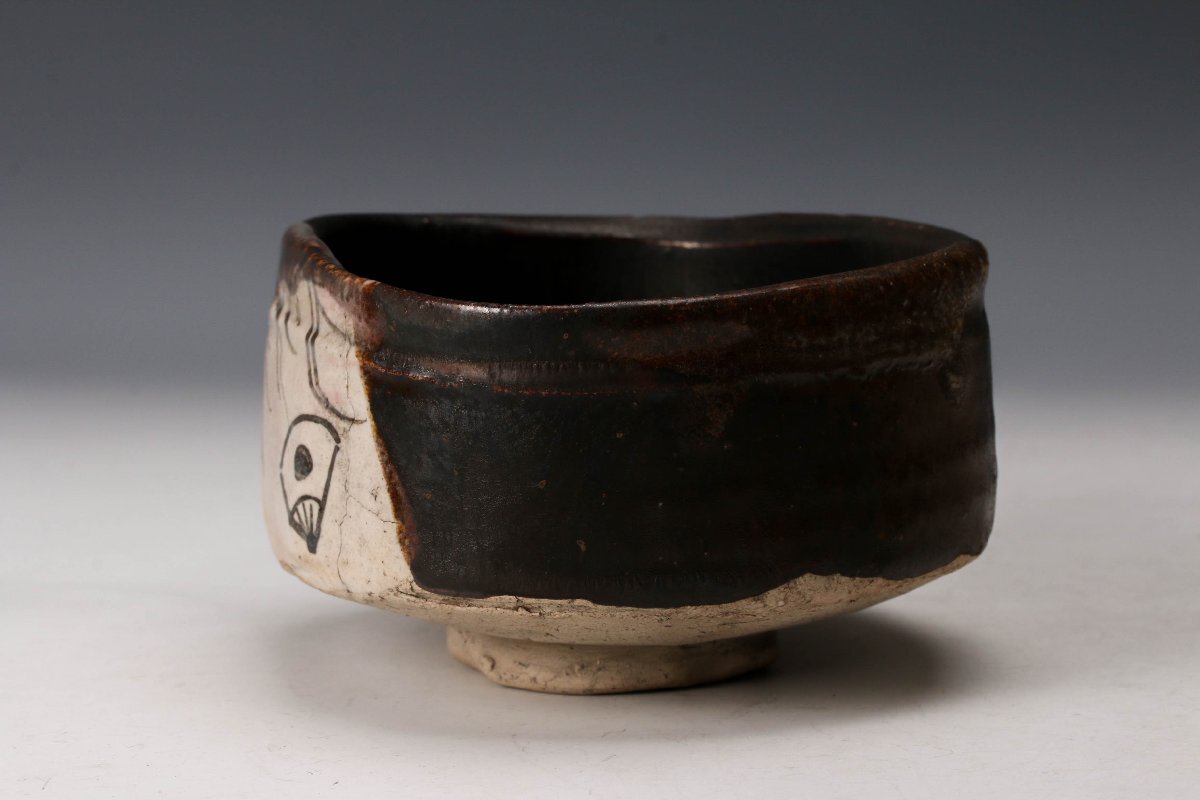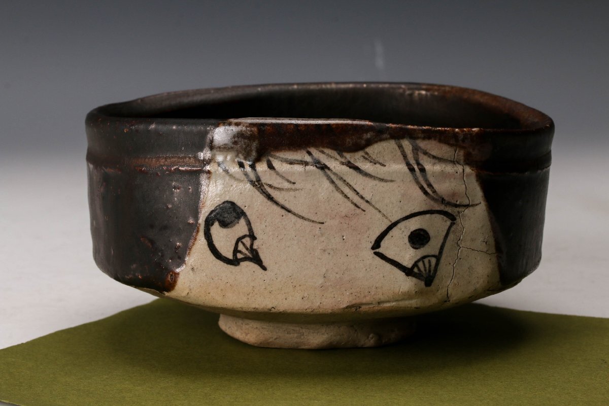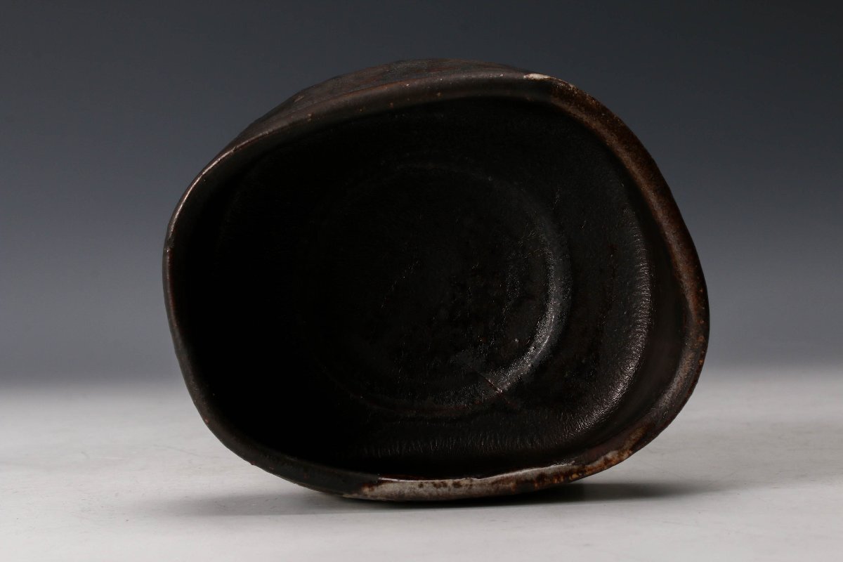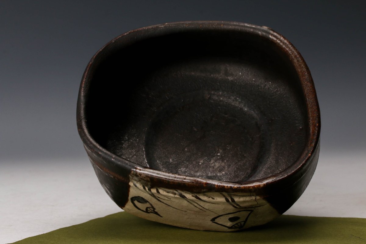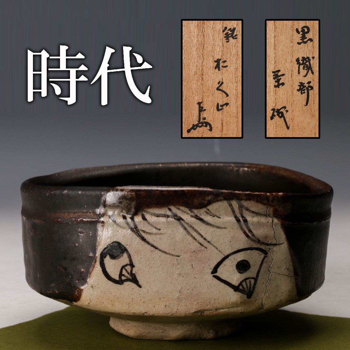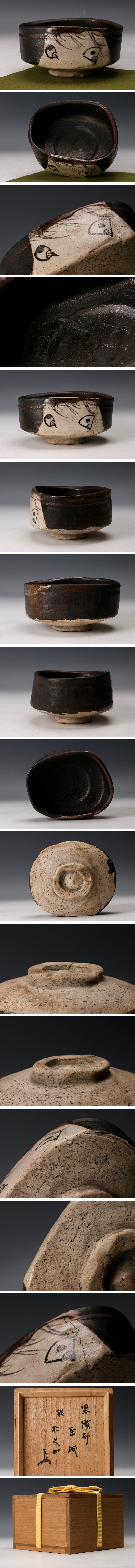 【佳香】時代 黒織部茶碗 表千家十三代即中斎(無盡宗左)書付箱 茶道具
