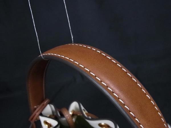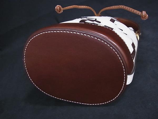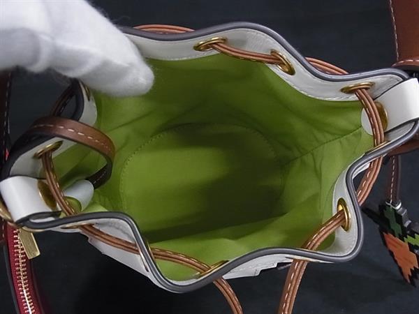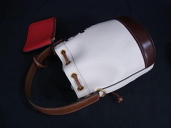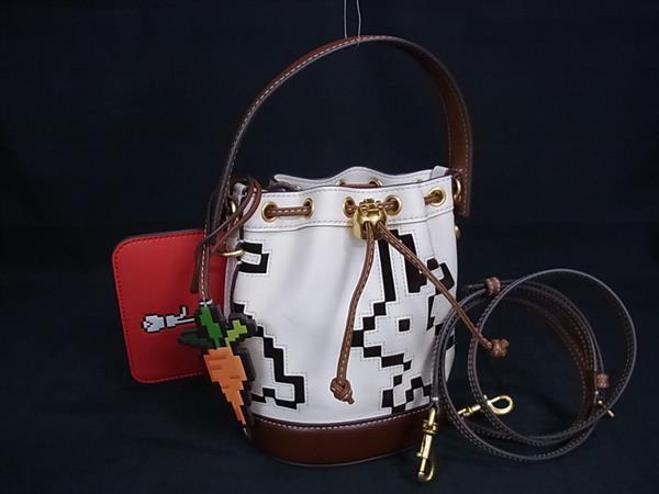1円 ■極美品■ TORY BURCH トリーバーチ ピクセレート ラビット レザー 巾着型 ショルダーバッグ アイボリー系×ブラウン系 FN8846